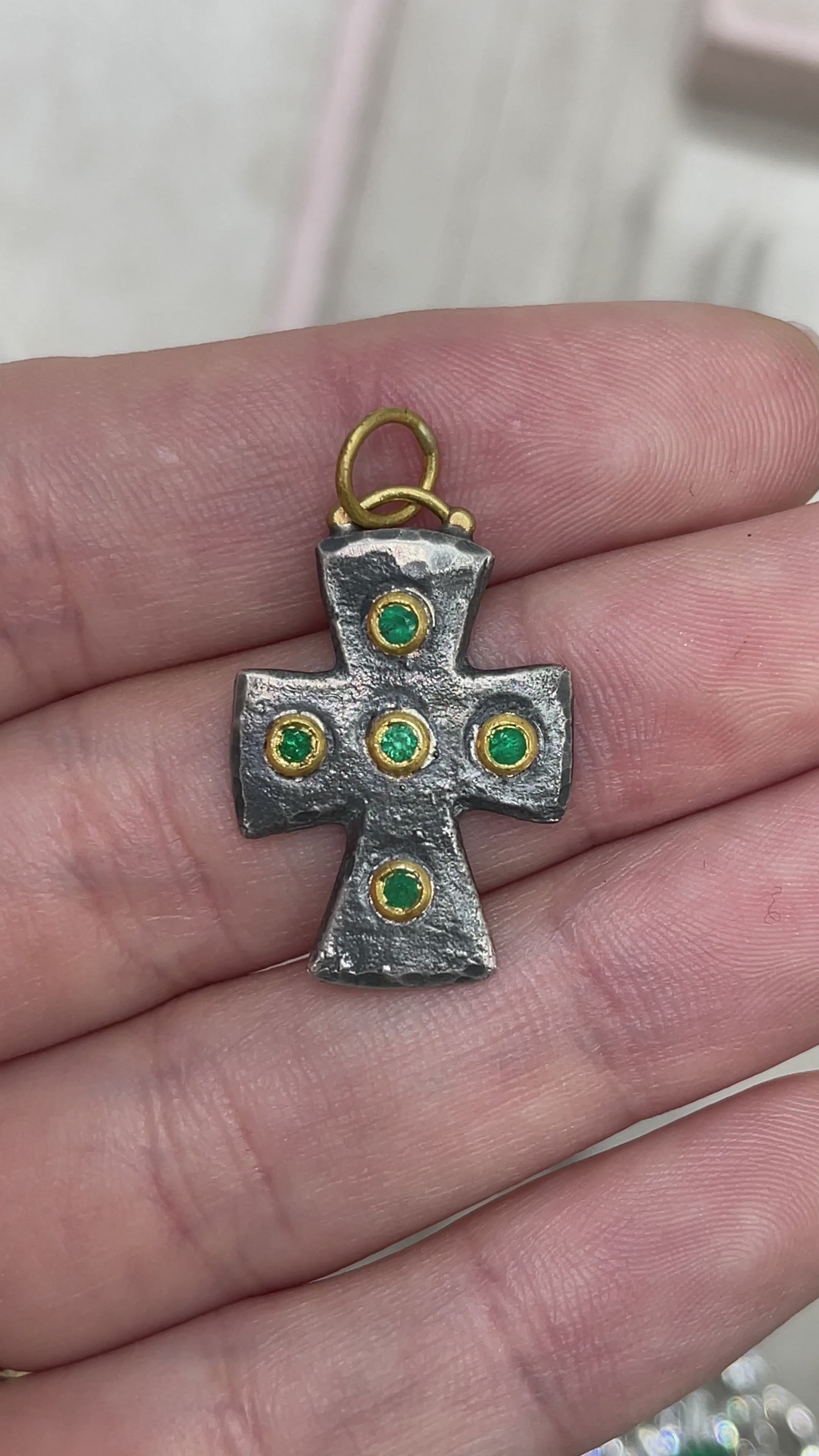 0.18tcw Byzantine 24K Gold & Sterling Silver Emerald Cross Pendant