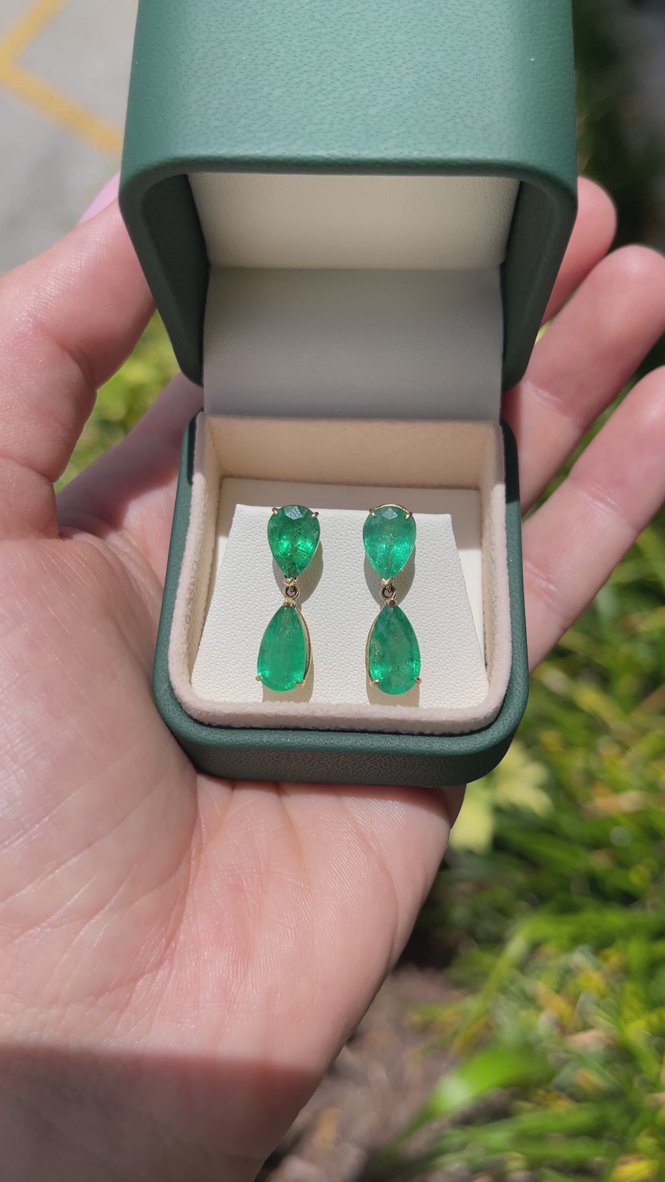 7.20tcw Pear Cut Emerald Dangle Stud Earrings Natural Emeralds 18K