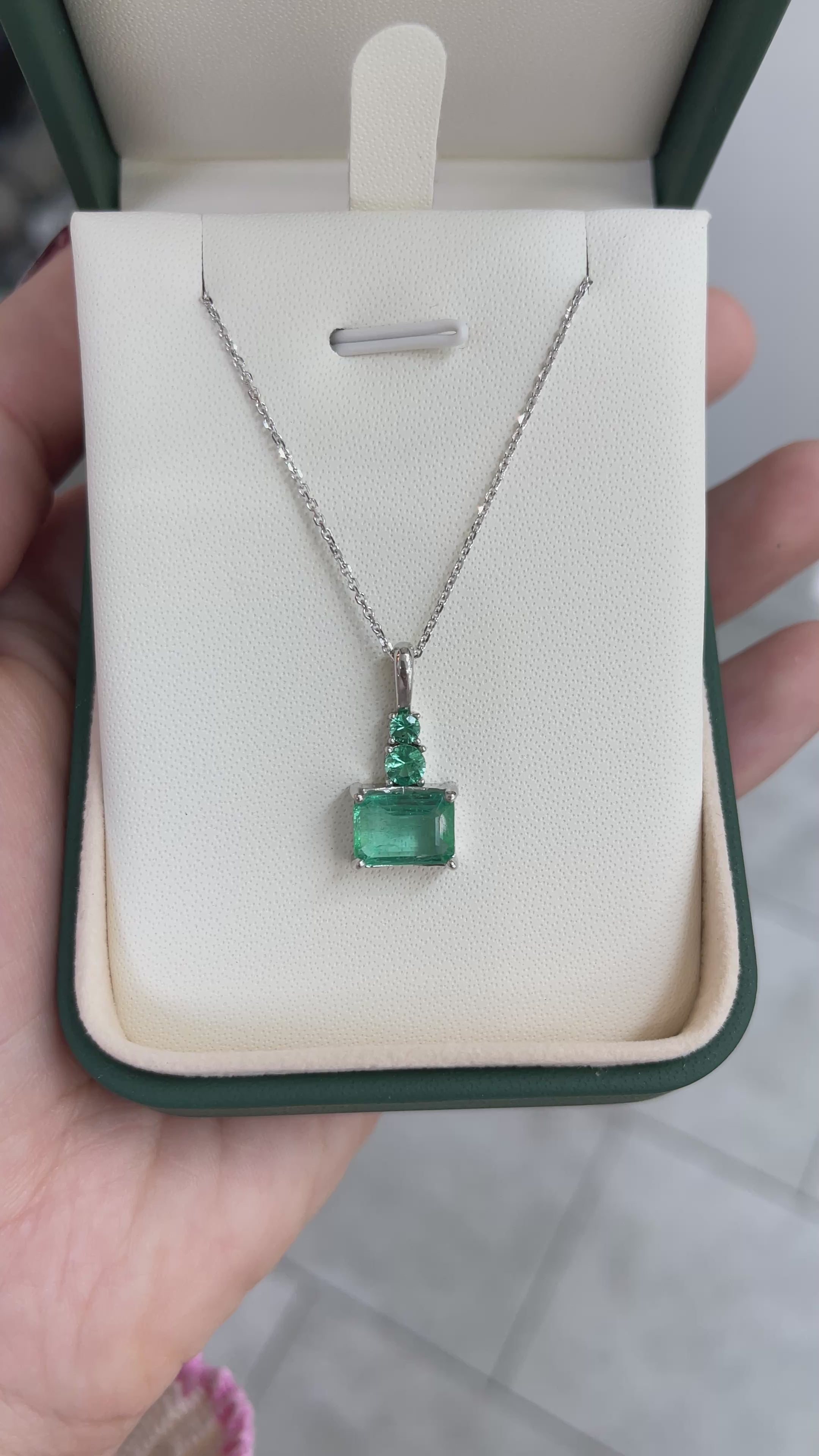 2.50 Carat Colombian Emerald-Asscher Cut Solitaire Four Prong Pendant 14K