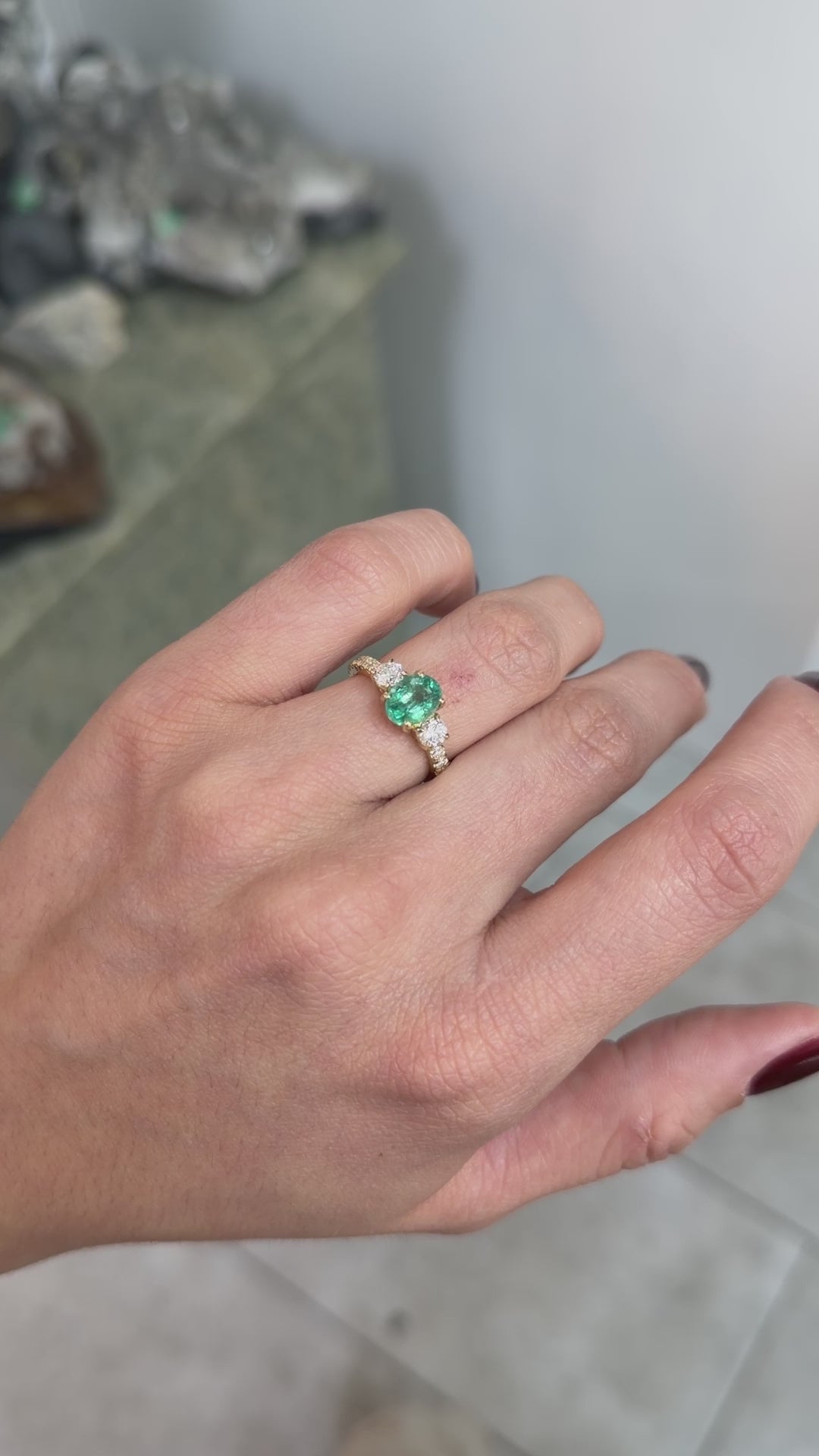 2.40tcw Natural Oval Freckled Emerald & Lab Diamond Accented Engagement Ring 14K