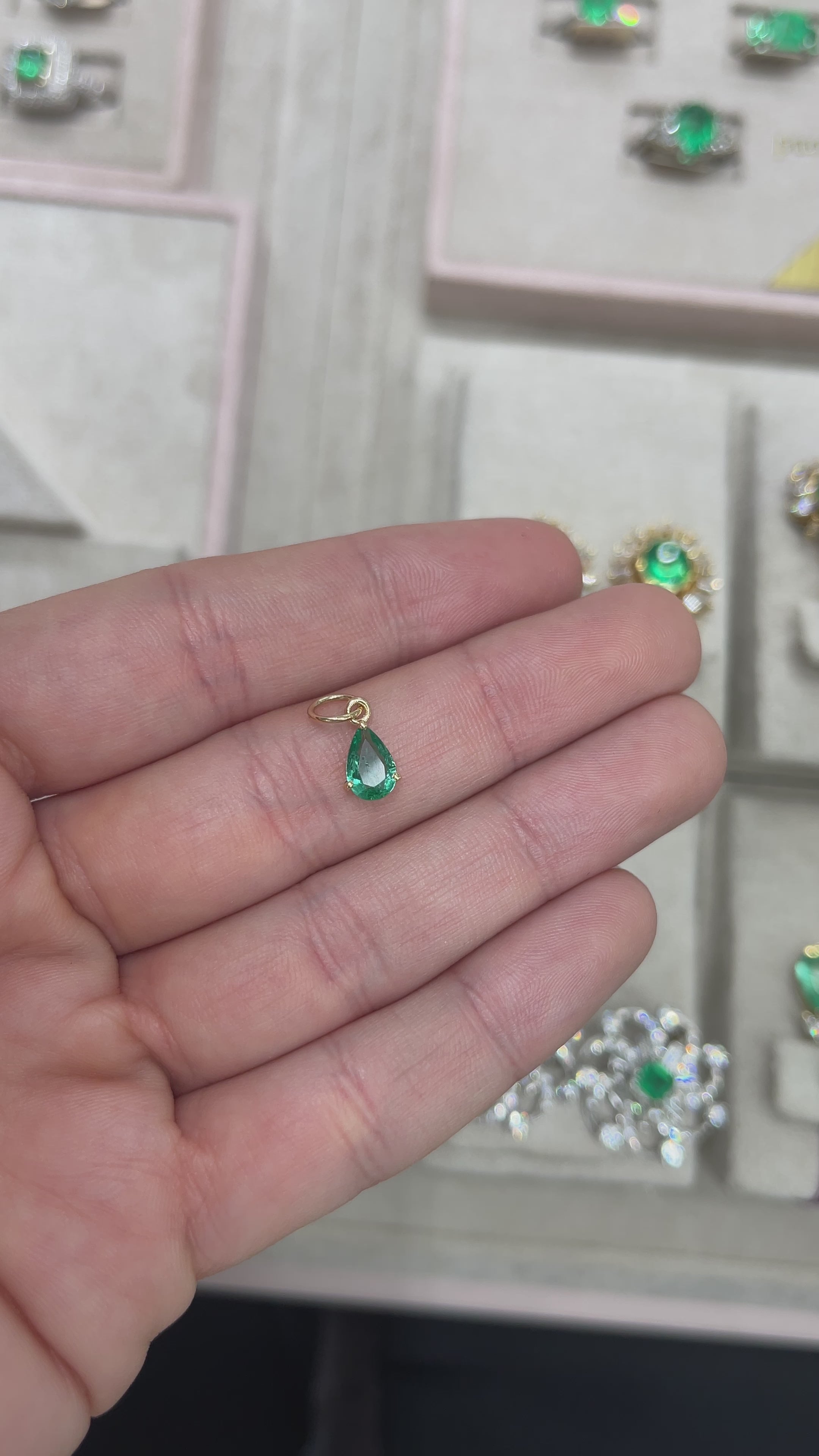 0.70ct Petite Natural Freckled Teardrop Emerald Prong Pendant 14K