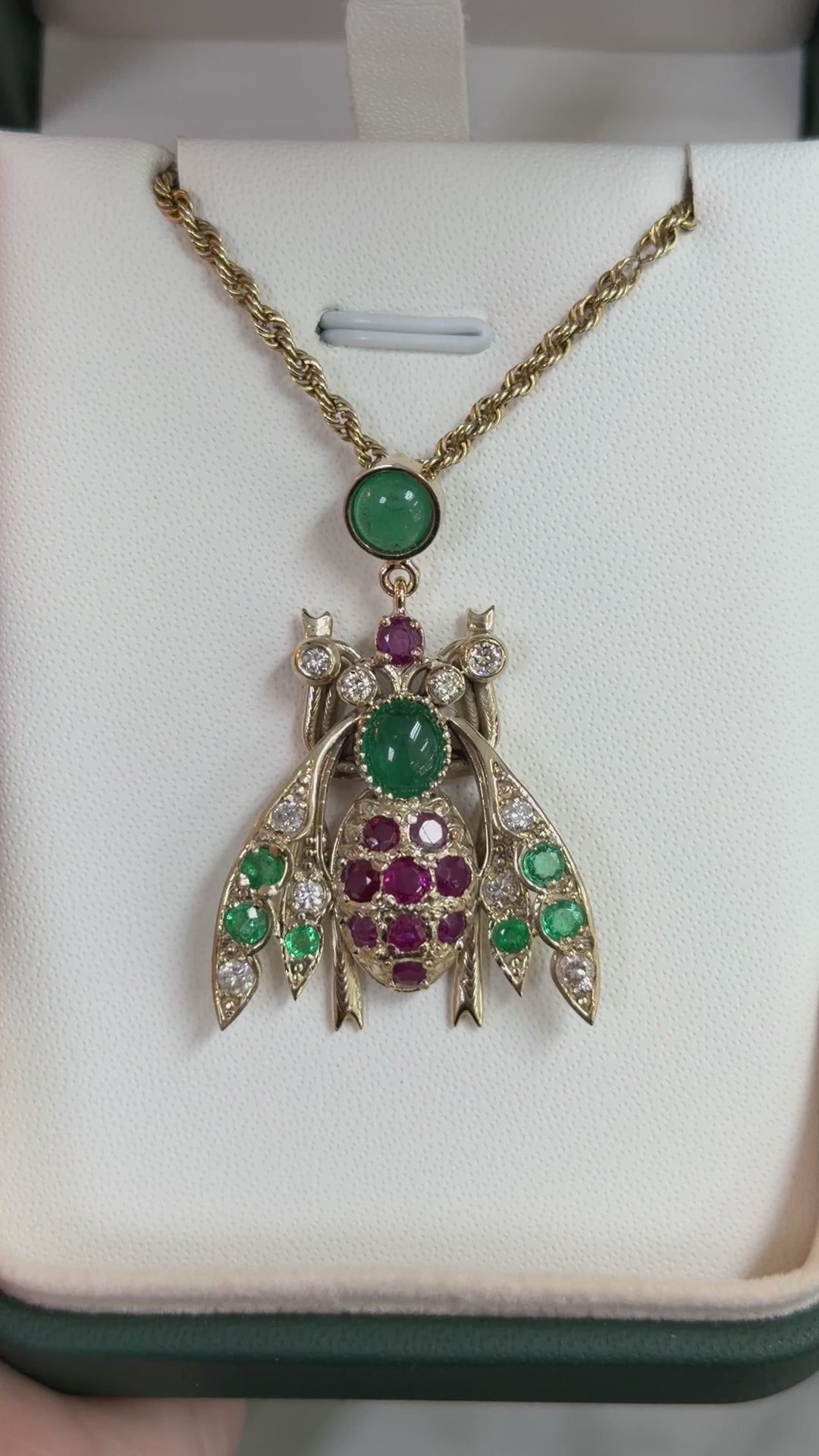4.14tcw Emerald Ruby Diamond Bug Bee Insect Pendant 14K