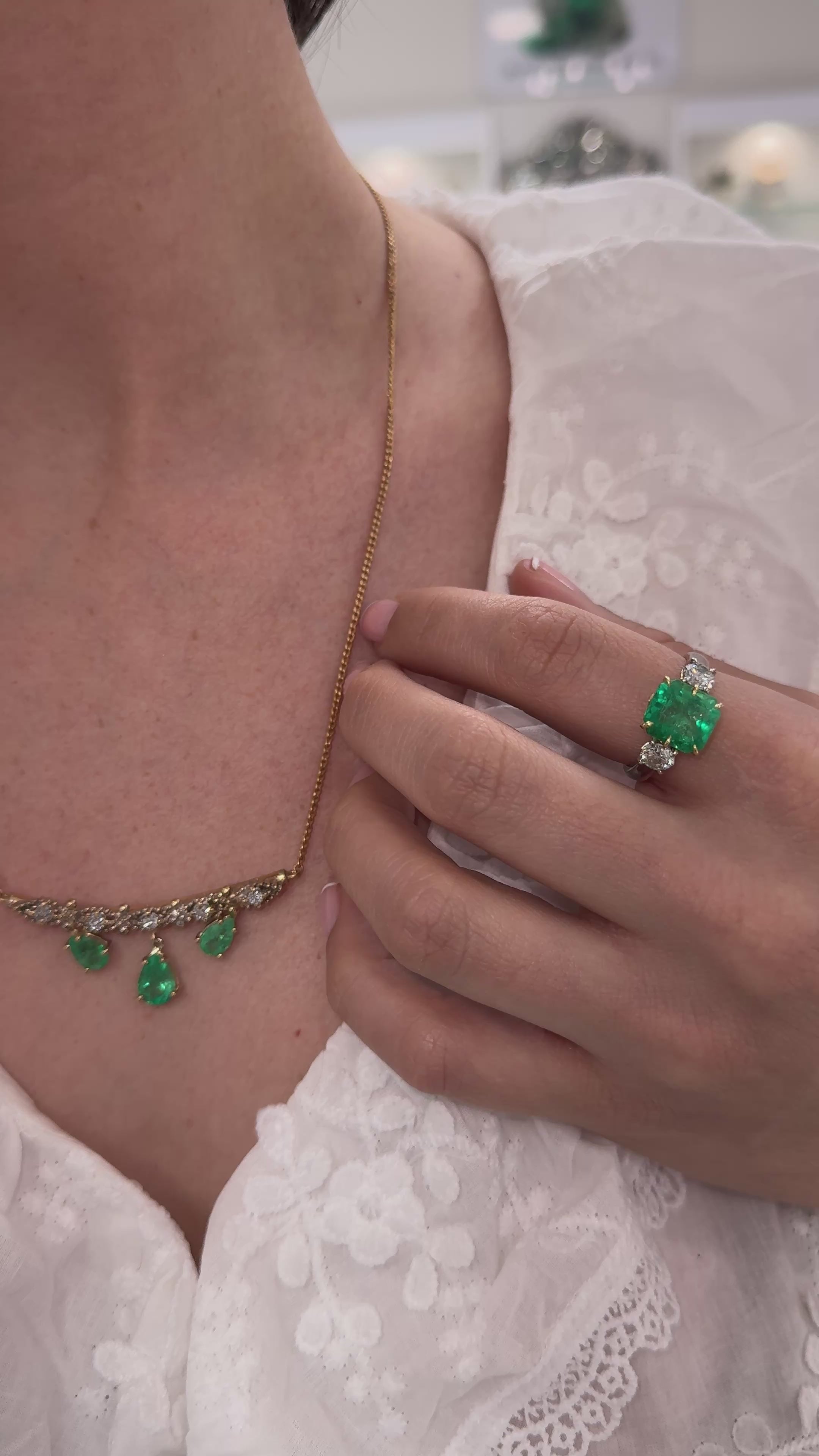6.70tcw Bib Vintage Emerald Pear & Diamond Necklace 14K