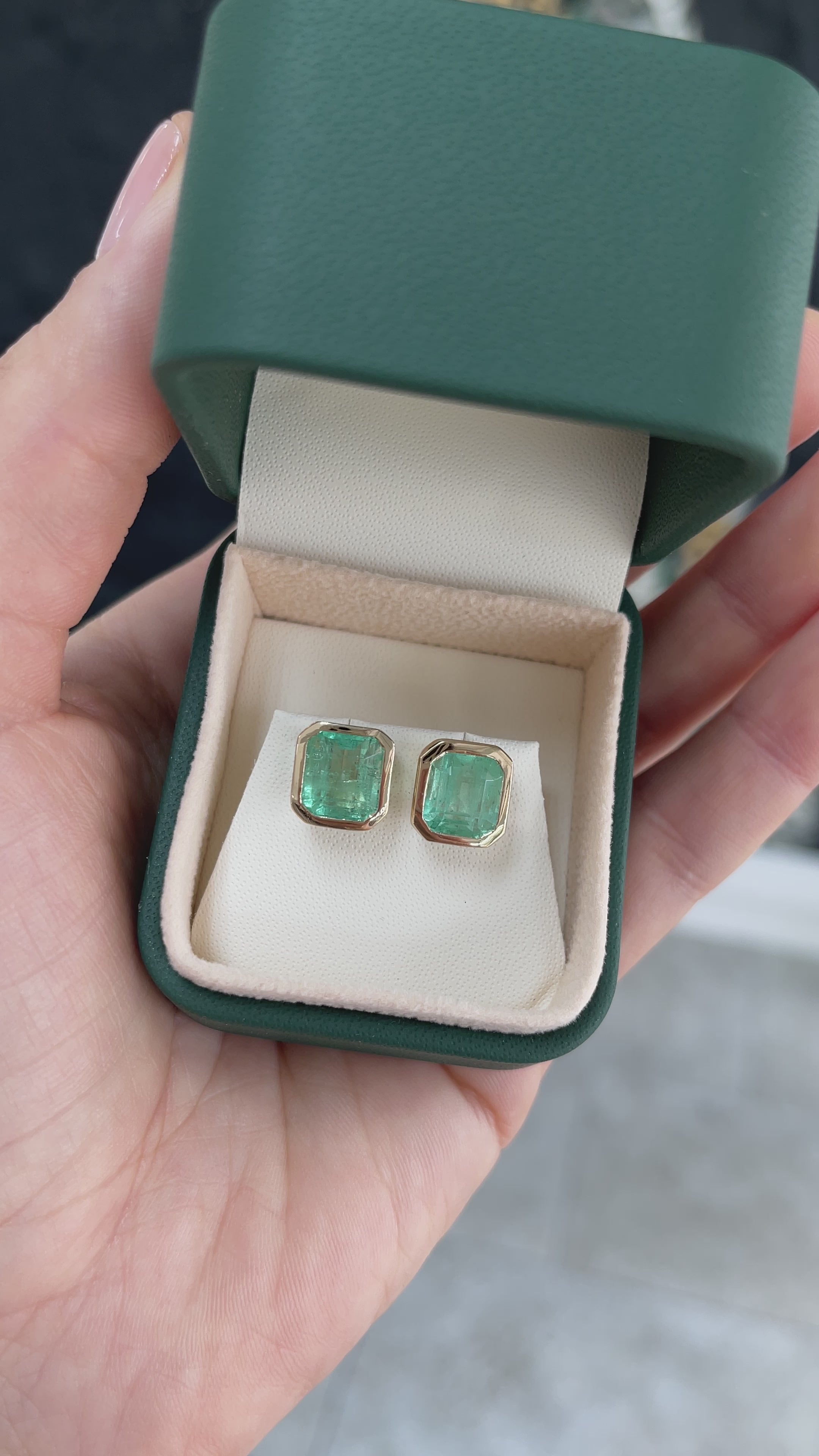 6.80tcw Bezel Set Natural Colombian Emerald Stud Earrings