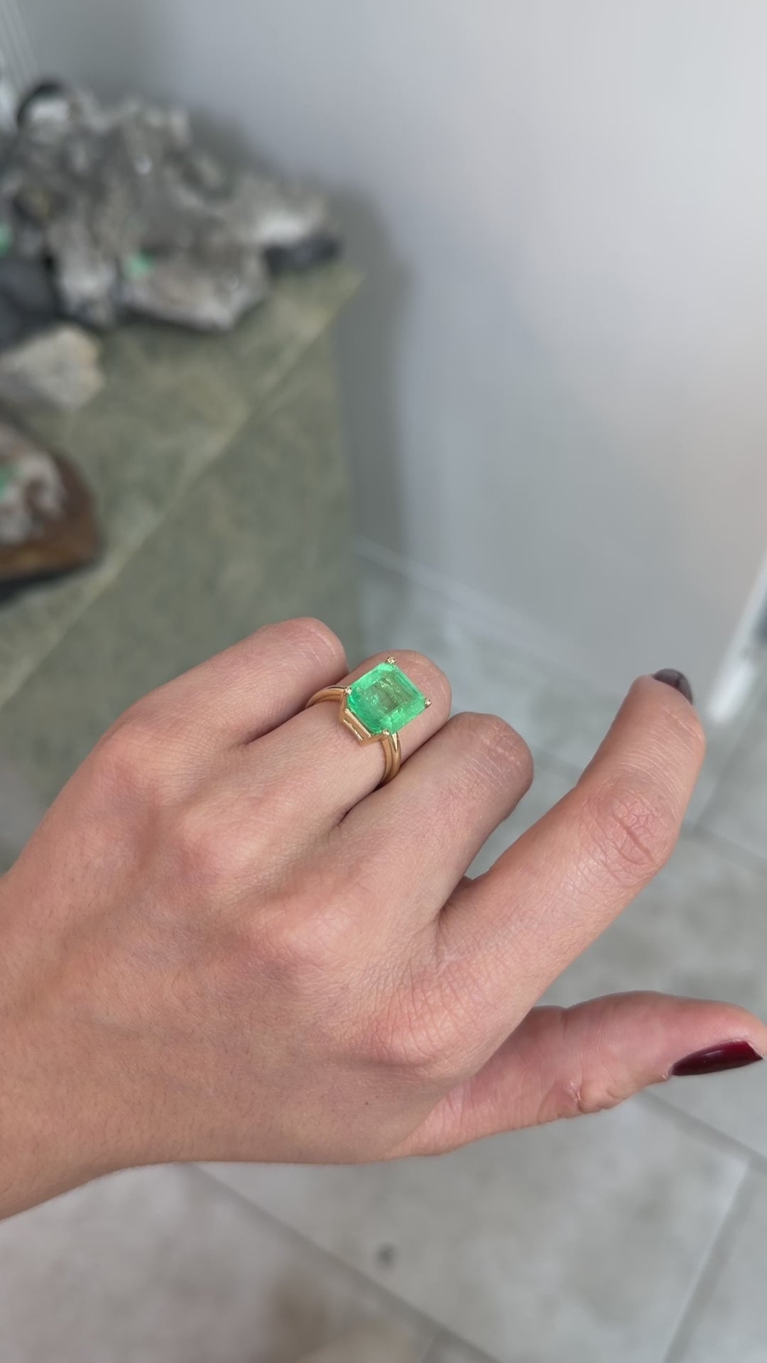 7.0ct Natural Asscher Cut Emerald Solitaire 18K Gold Engagement Ring