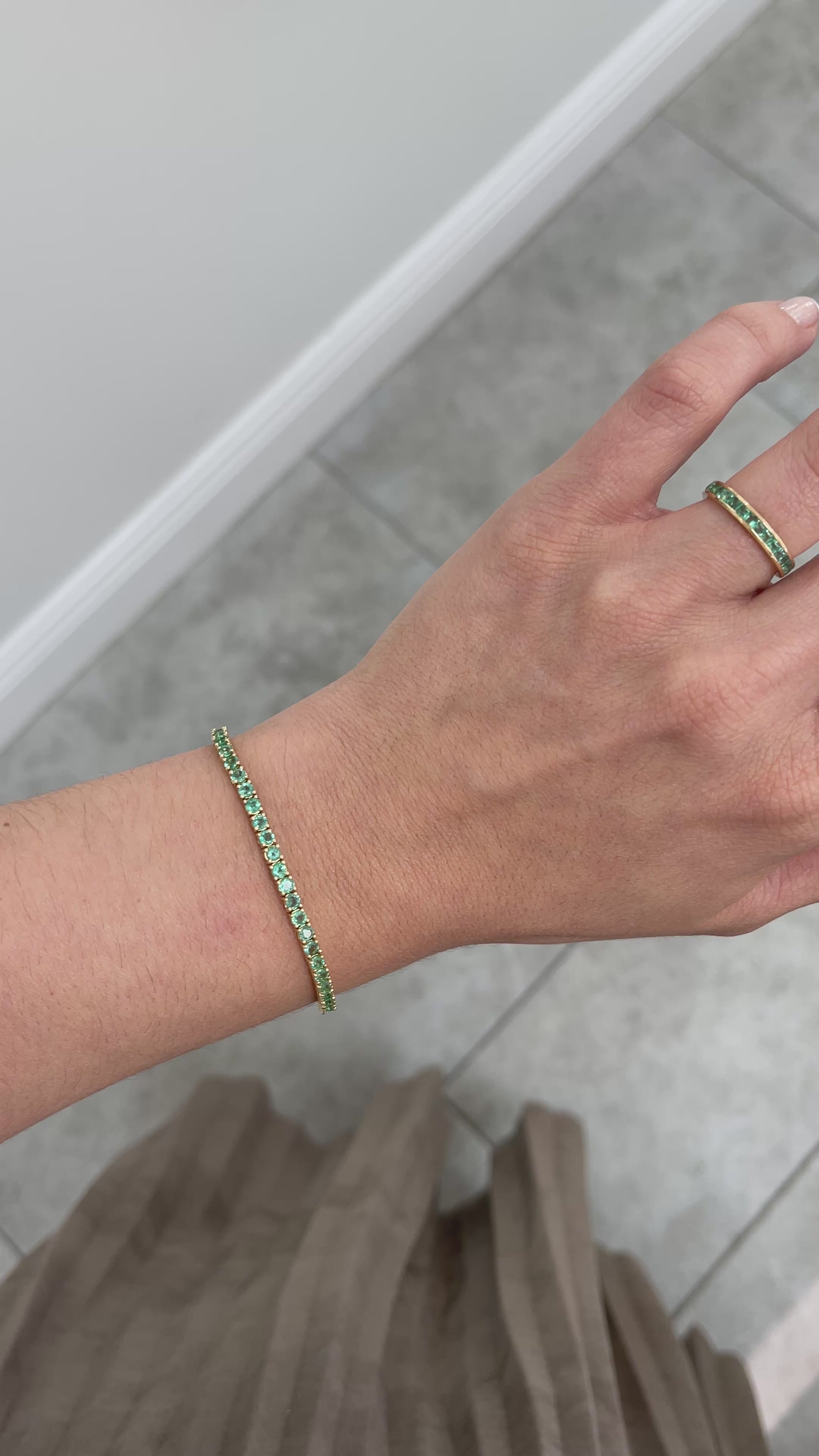 Petite 1.14tcw Emerald & Diamond Tennis Bracelet 14K Yellow Gold- 7 Inches