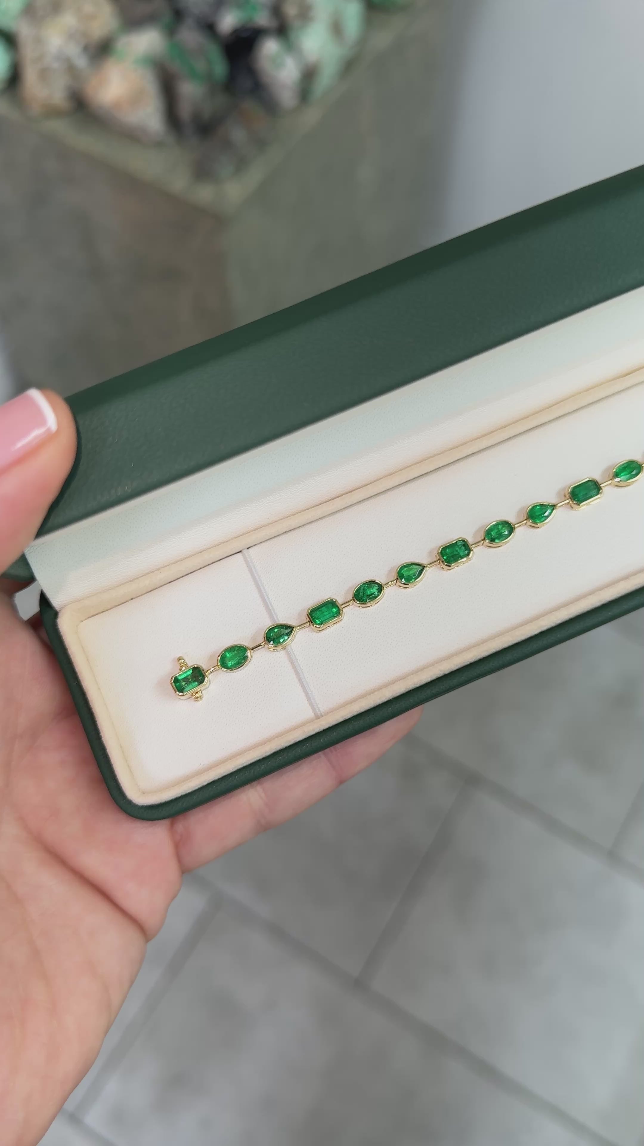 7.93tcw 18K Emerald Mixed Shape Tennis Bracelet- 7 Inches