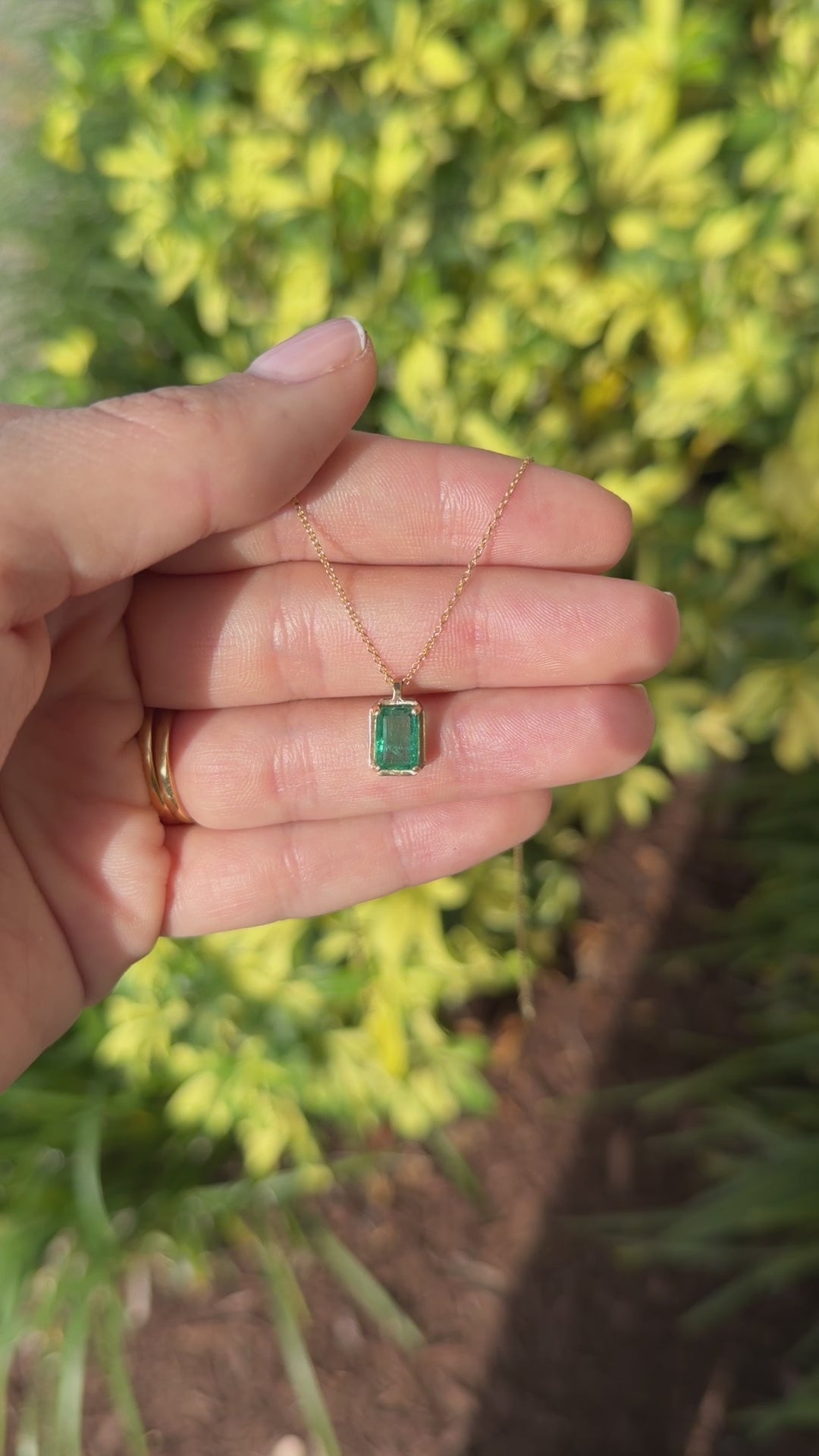 2.28 Carat Semi Bezel Emerald Solitaire Necklace 14K- Emerald Touches Skin