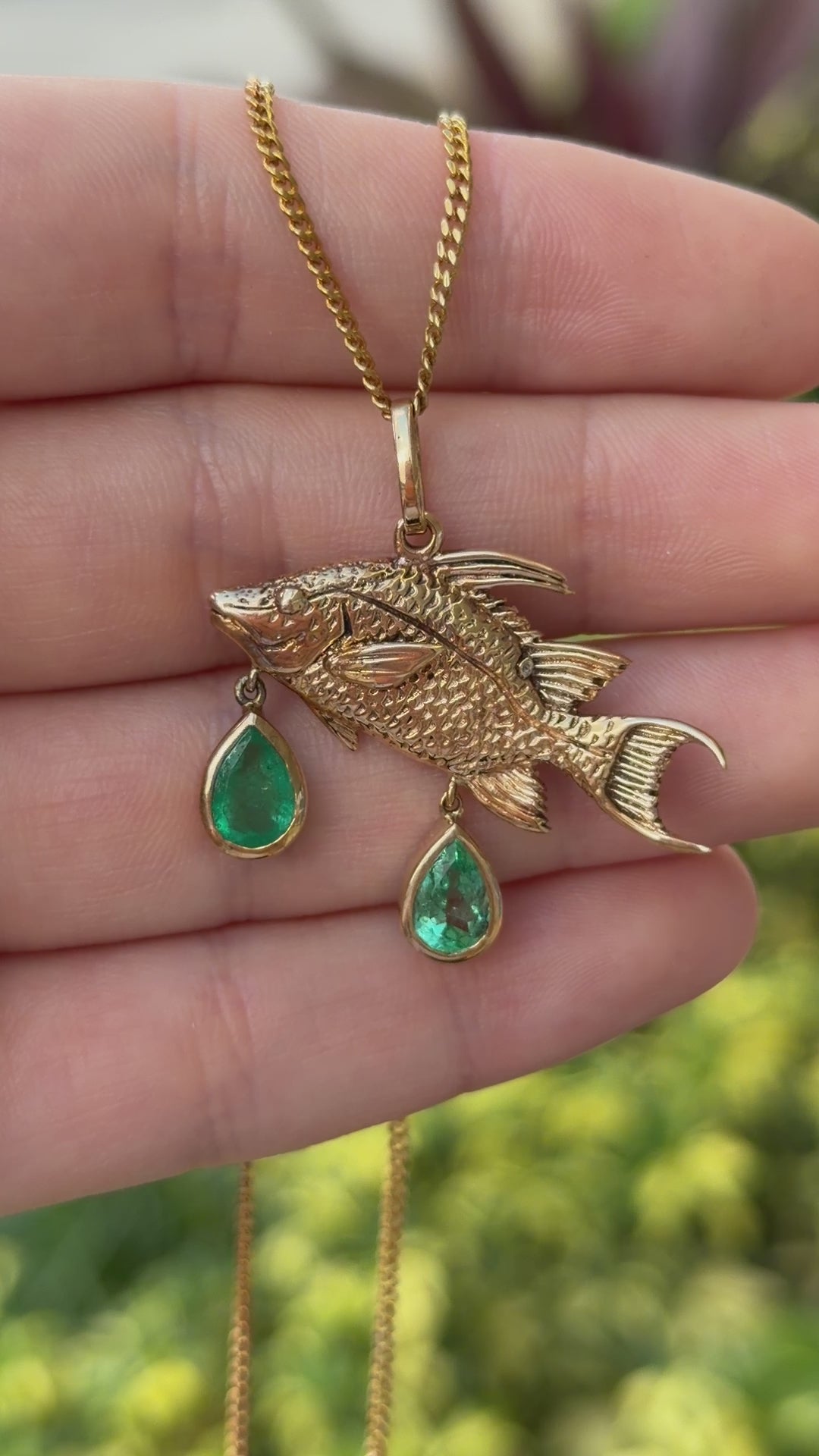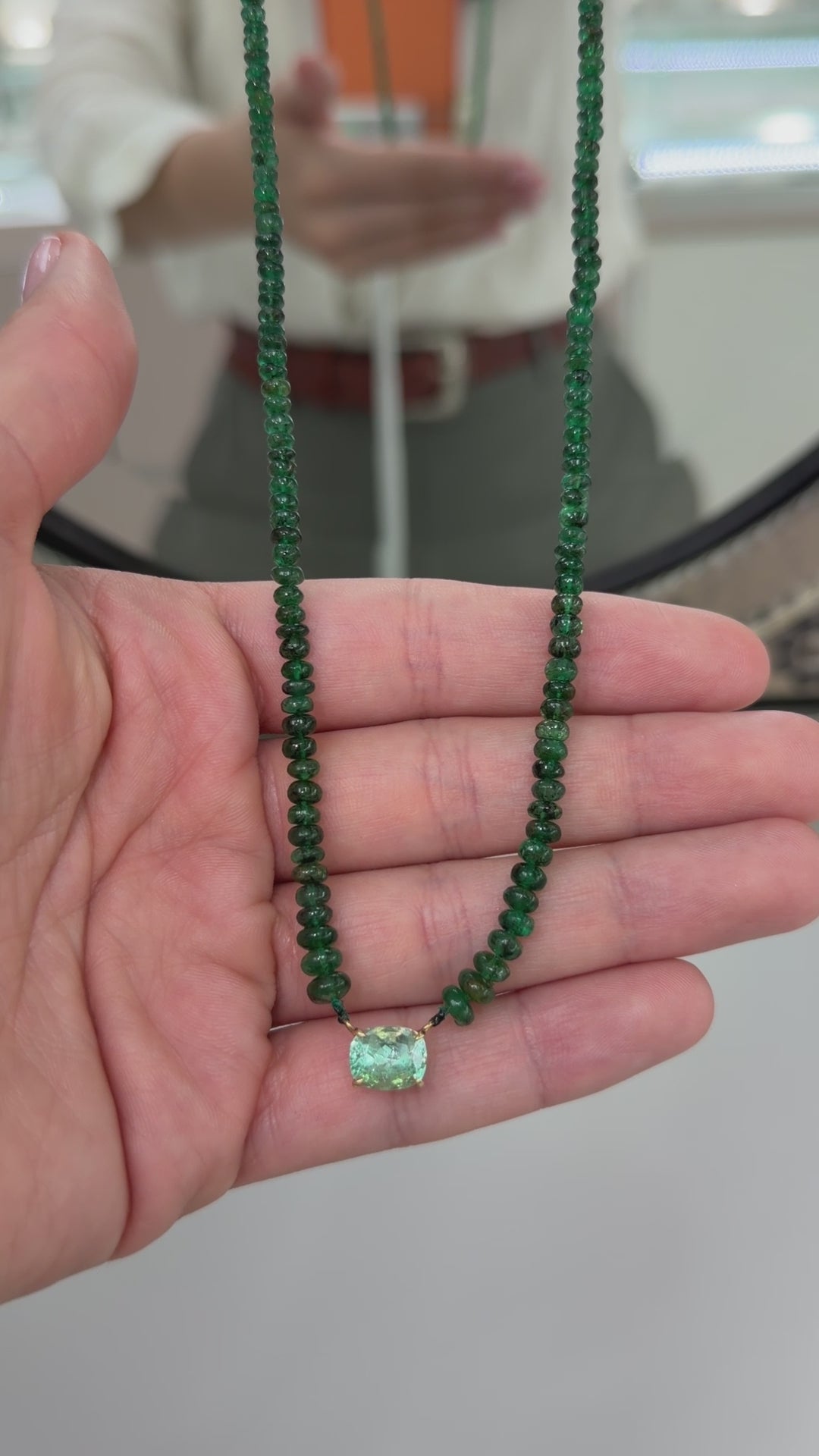 32 Carat Cushion Cut Emerald & Emerald Bead Necklace 14K