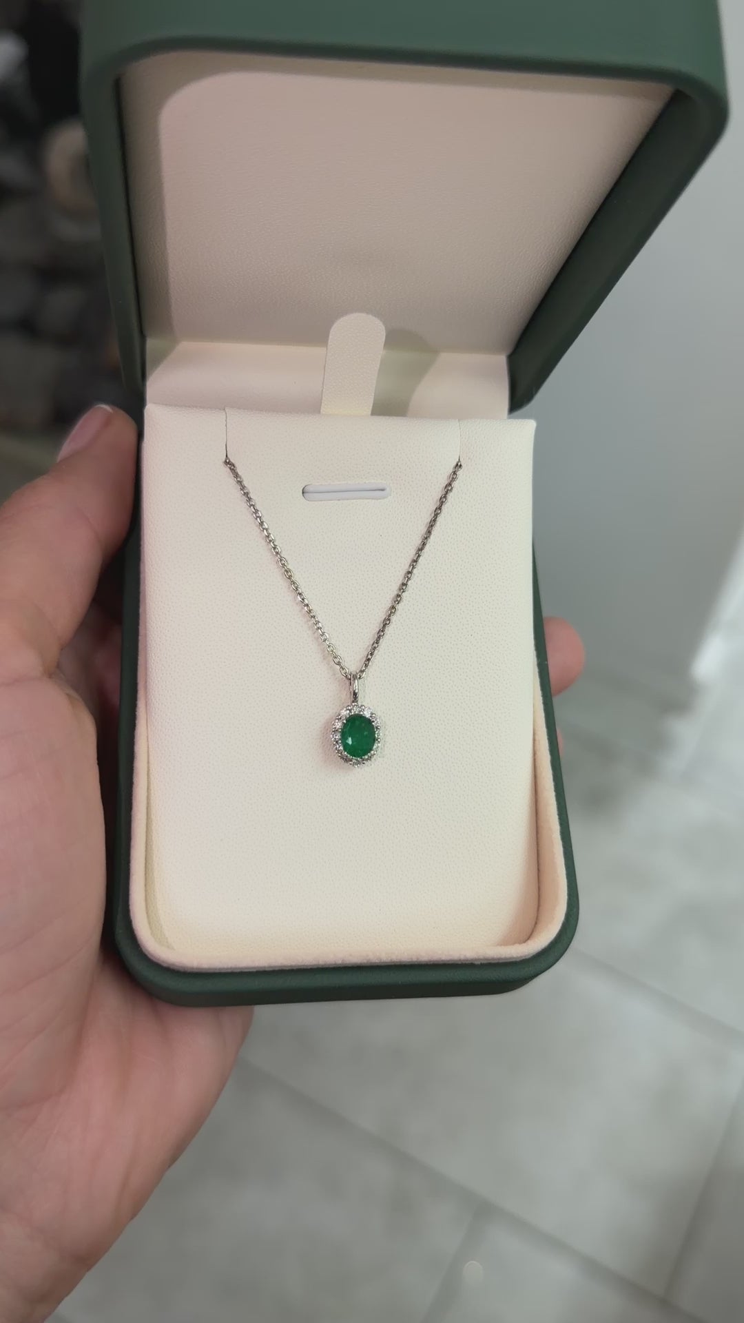 1.01tcw AAA+ Oval Colombian Emerald & Diamond Halo White Gold Necklace 14K