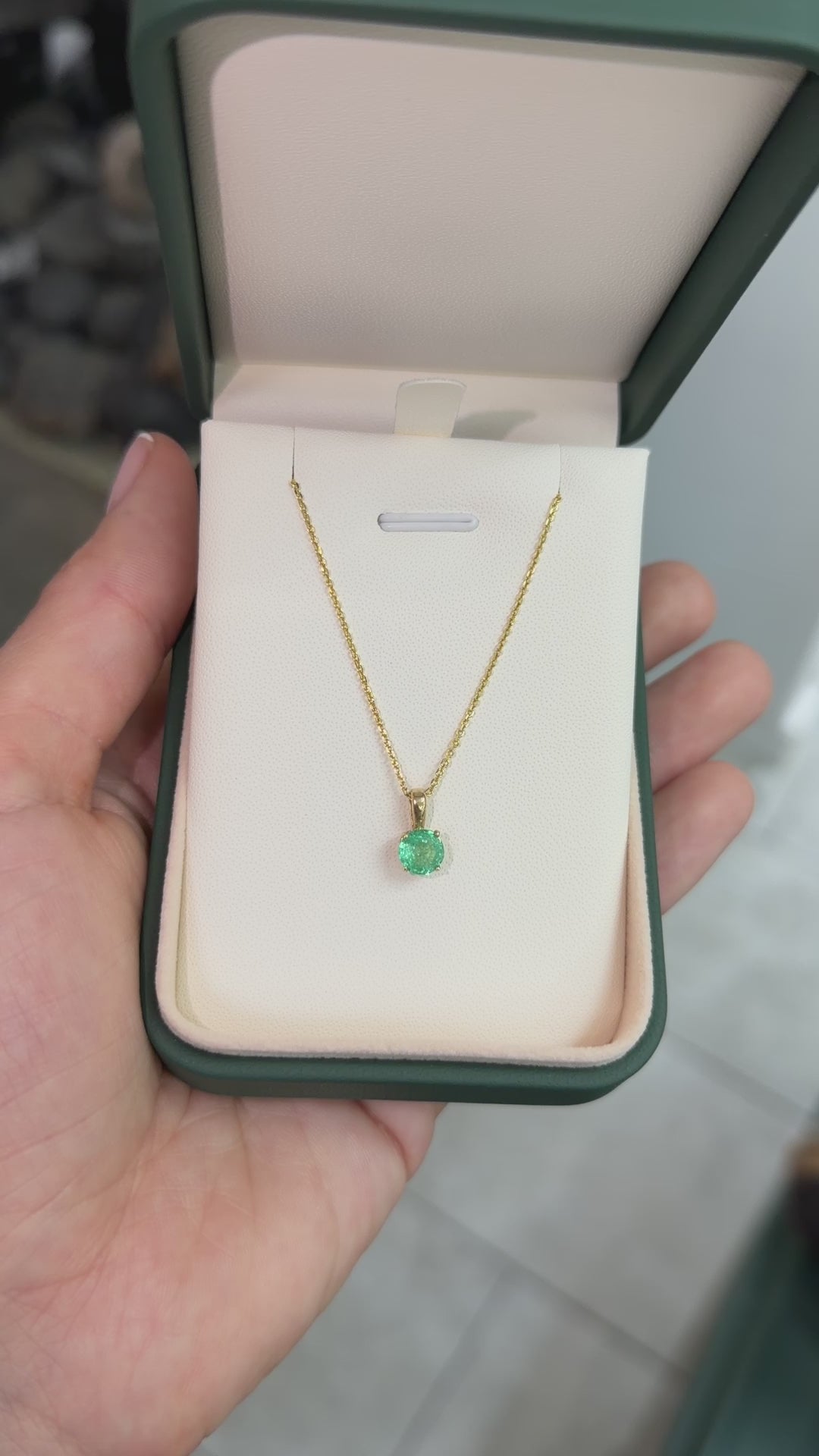 1.59 Carat Crystal Clear Bluish Green Solitaire Emerald Necklace 14K