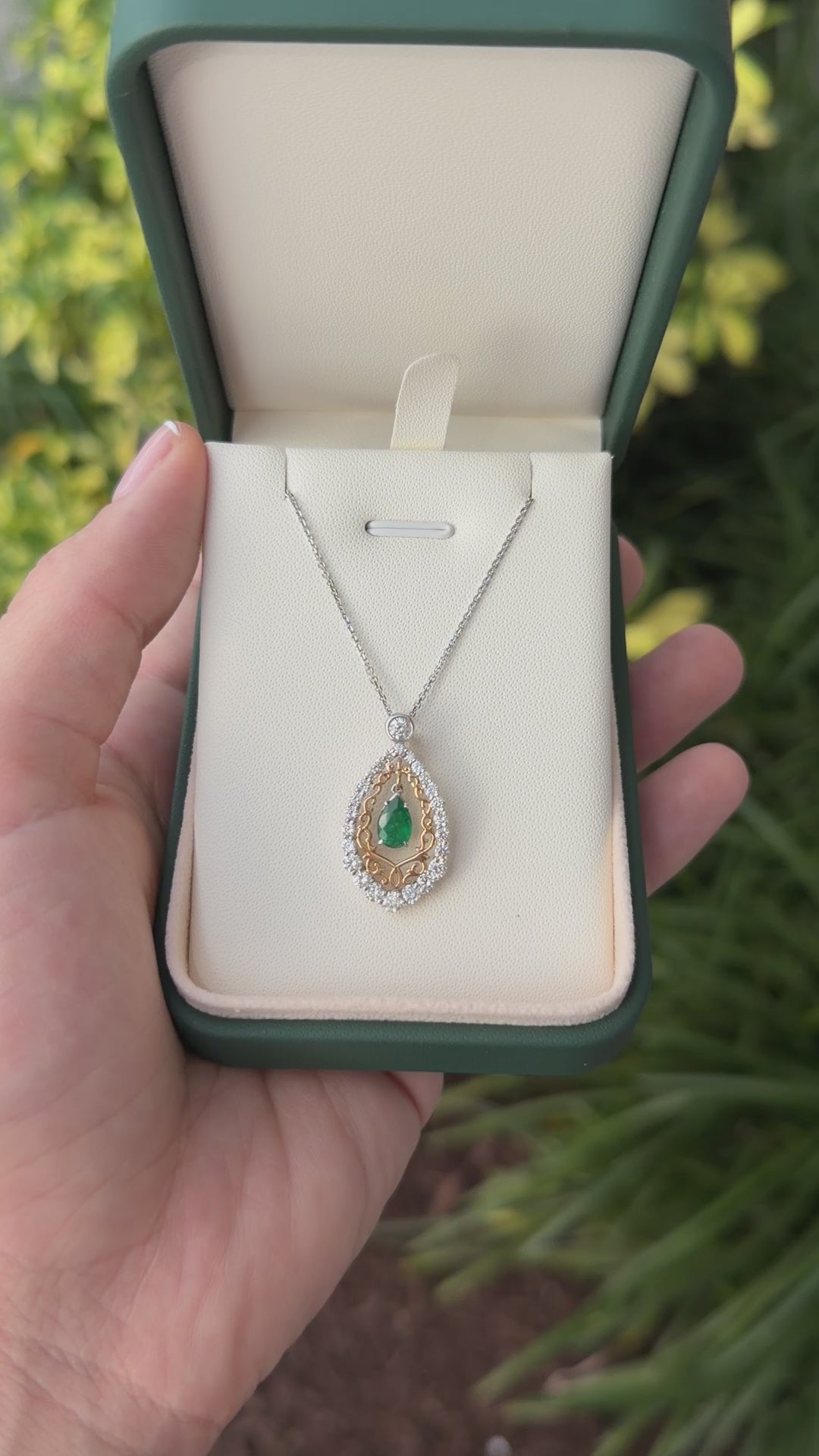 1.43tcw Pear Emerald & Diamond Two Toned Statement Necklace 14K