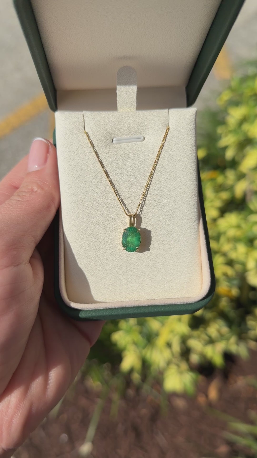 2.68 Carat Oval Natural Emerald Solitaire Pendant 14K