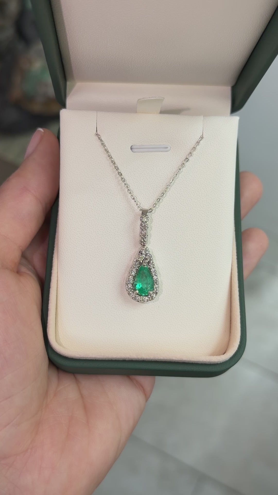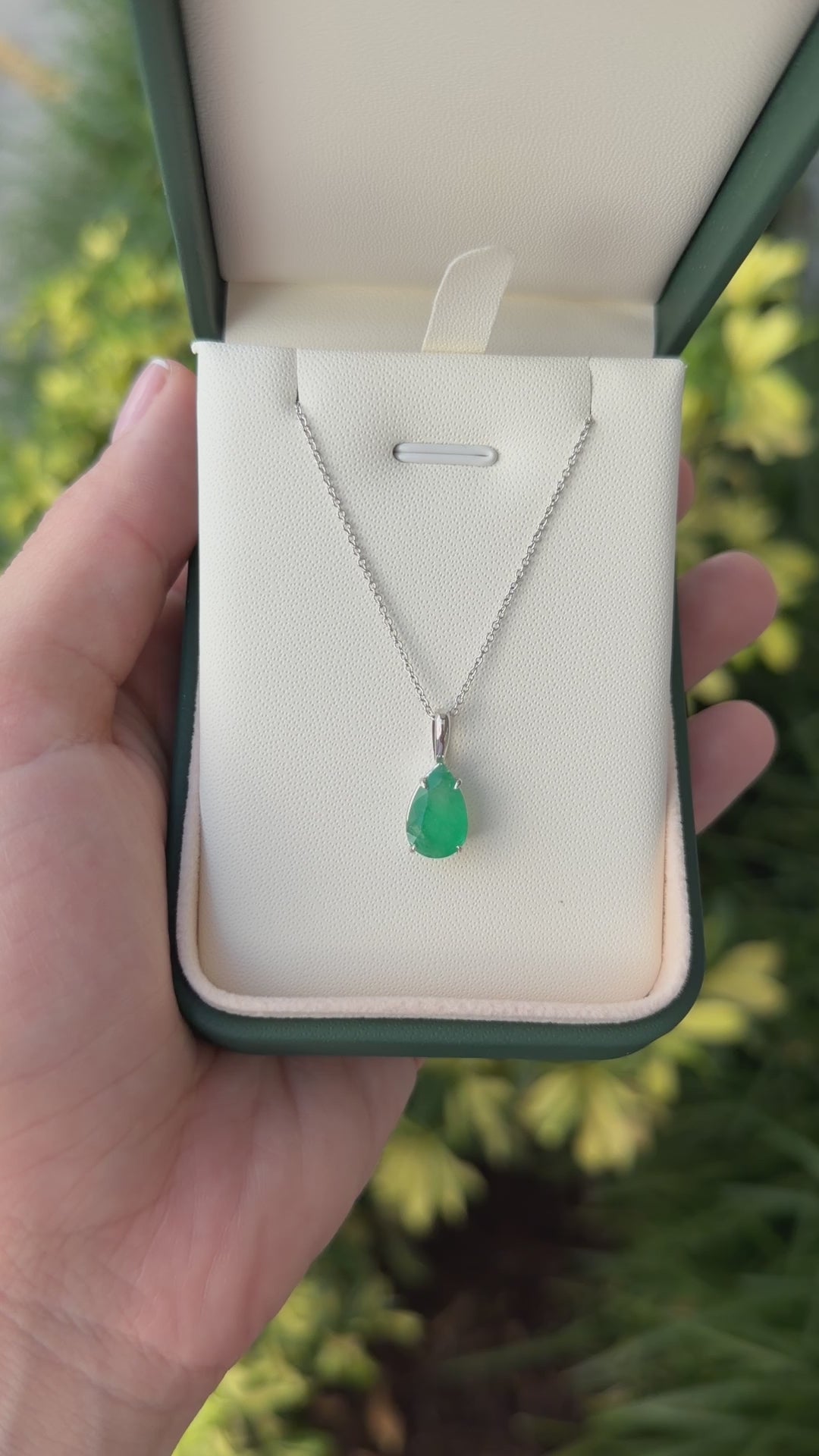 3.15 Carat Solitaire Natural Pear Emerald Necklace 14K White Gold