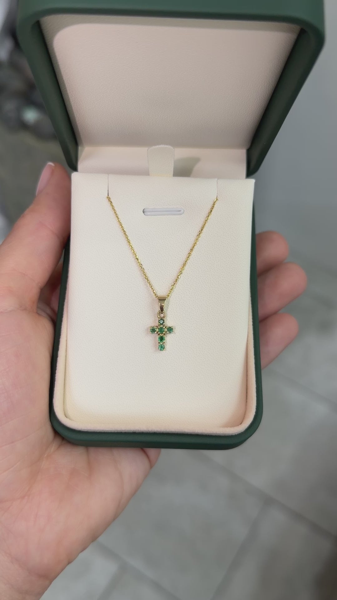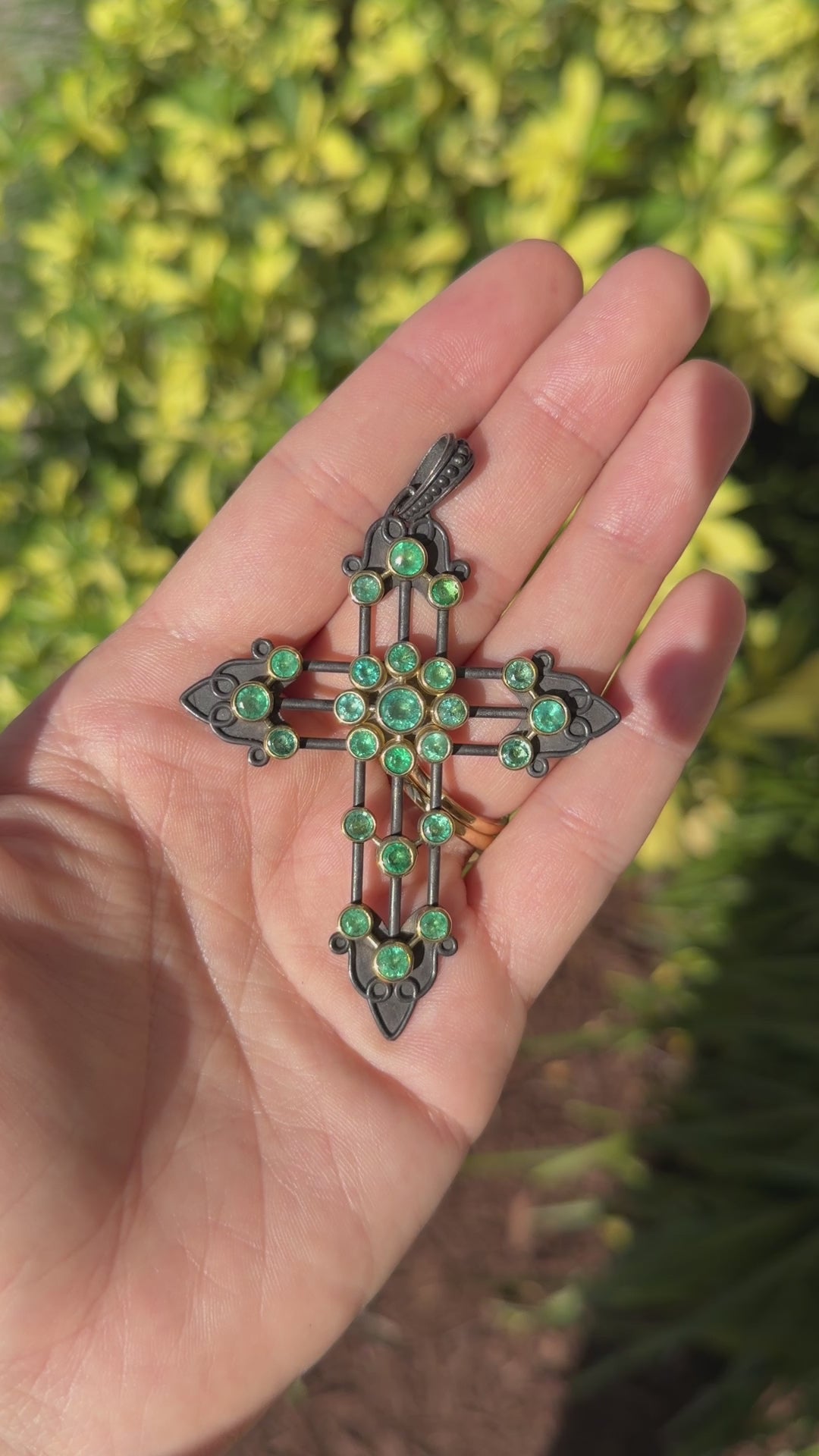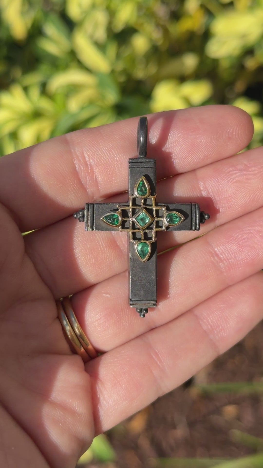 3.95tcw Gothic Emerald Crucifix 14K Gold & Blackened Silver