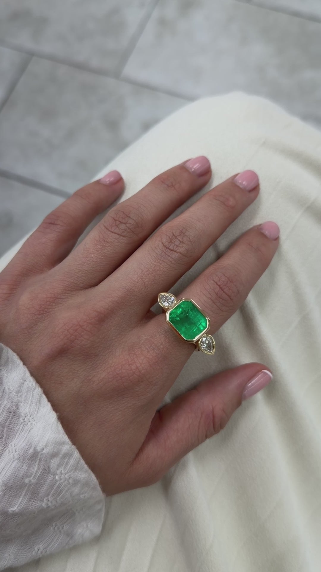 5.20tcw 18K Vivid Colombian Emerald Asscher & Diamond Three Stone Ring
