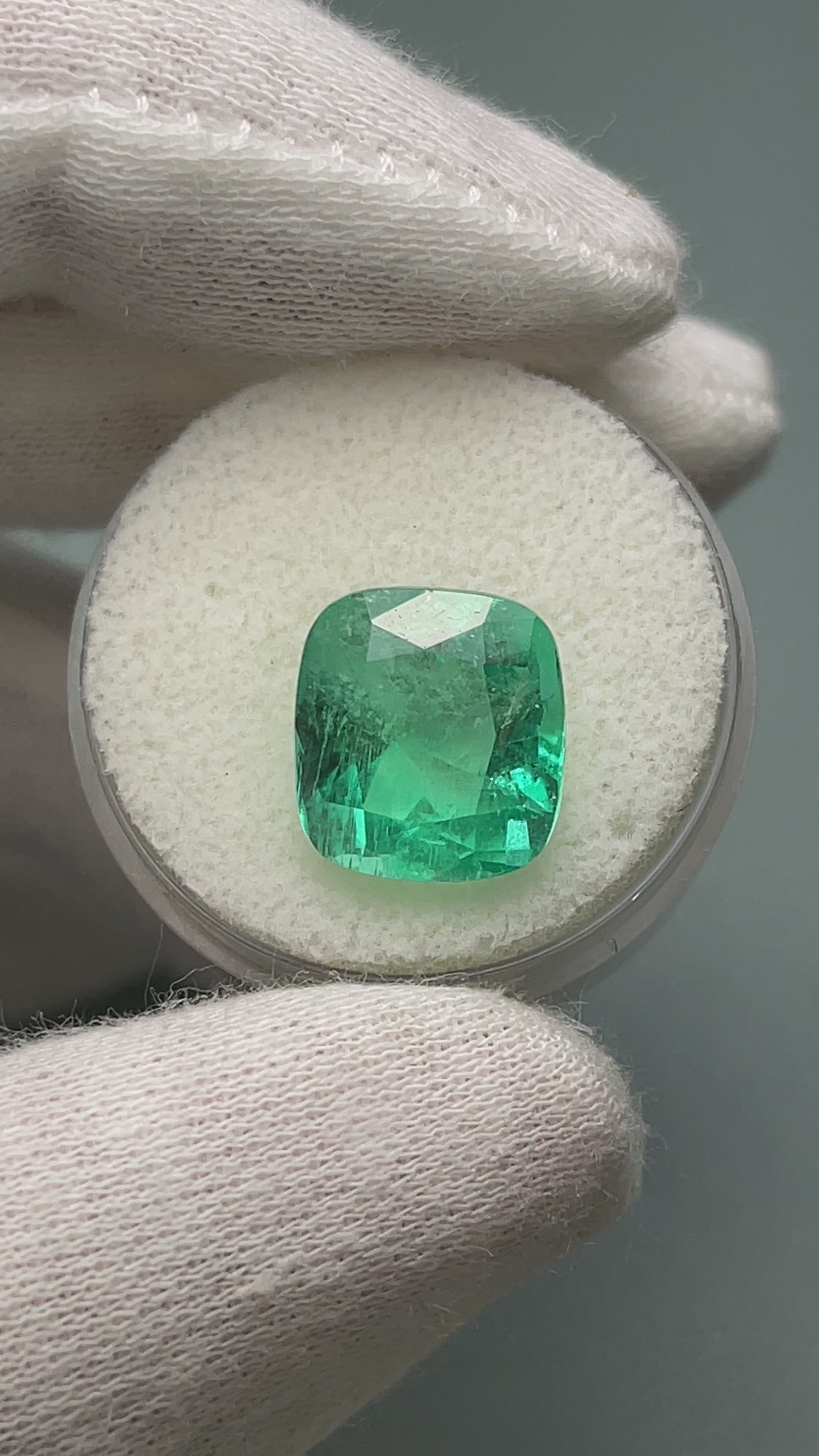 6.65 Carat 12x11.5 Medium Bluish Green Natural Loose Colombian Emerald- Cushion Cut