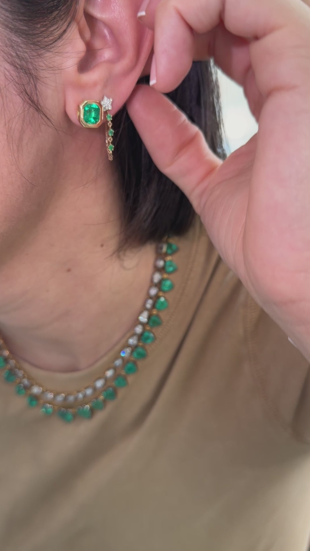 2,0 Karat „Crazy Cat Lady“ Smaragd-Ohrringe mit Hängeelementen, 14 Karat