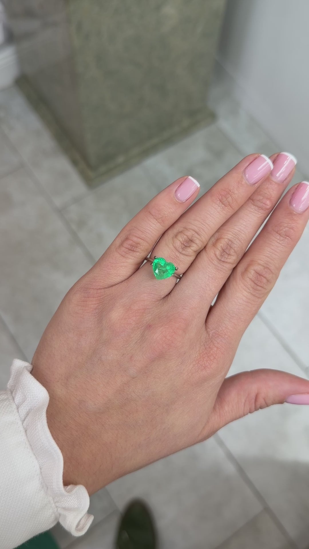 3.28 Carat 9.4x10 Yellowish Electric Green Natural Loose Colombian Emerald-Heart Cut