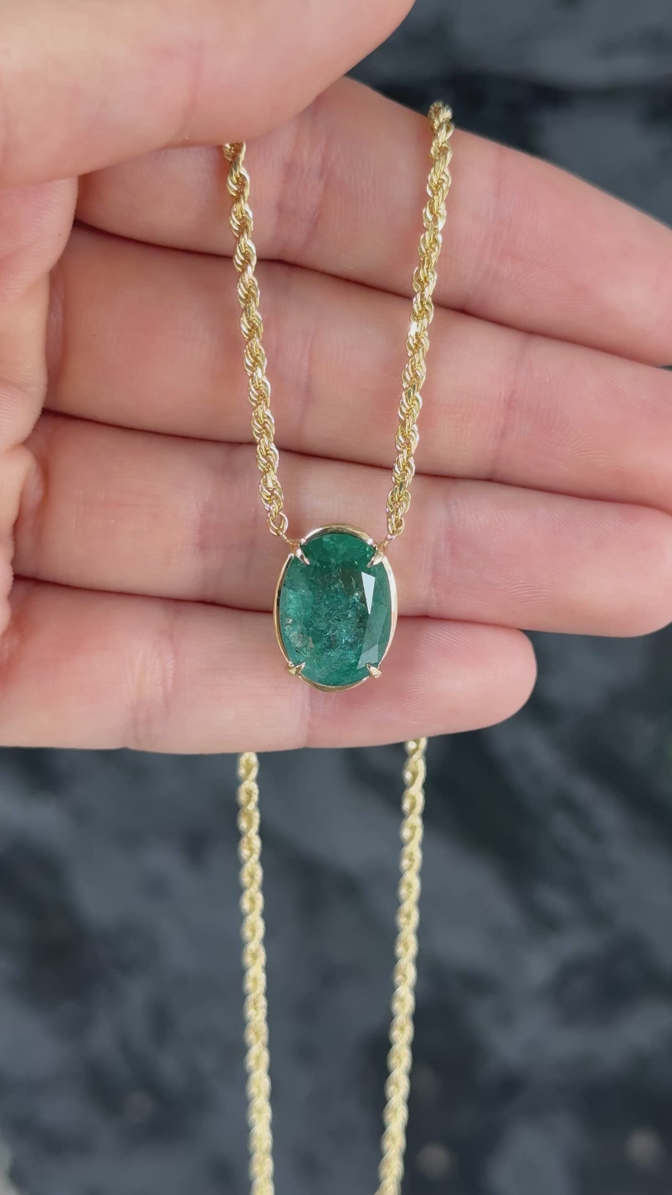 9 Carat Oval Emerald Solid Yellow Gold Stationary Solitaire Necklace 14K