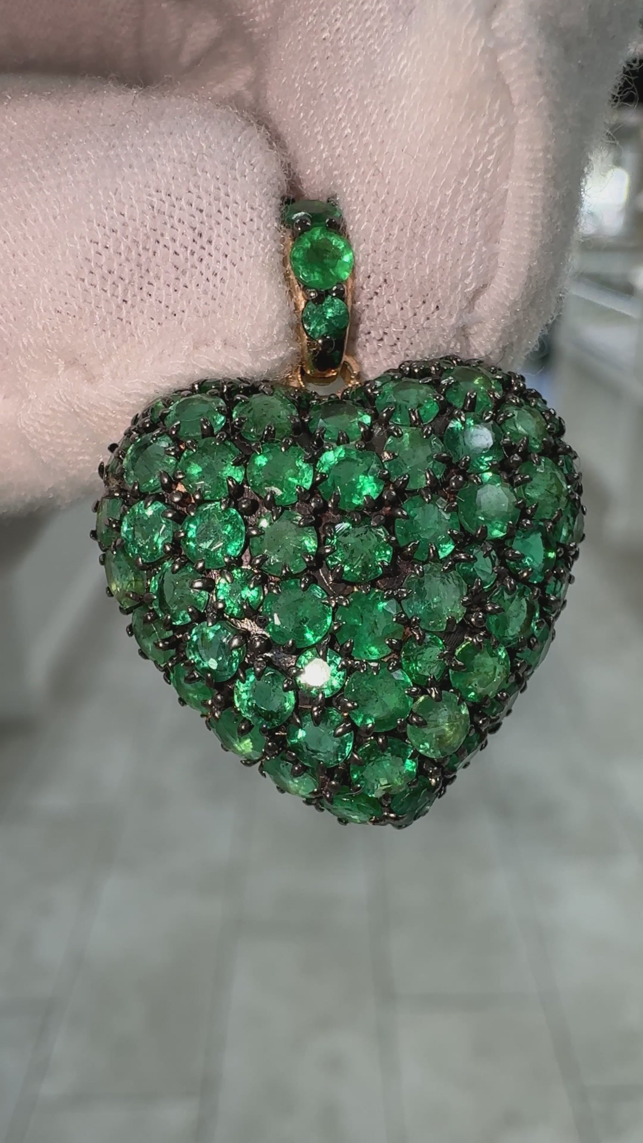 4.73tcw 14K Multi-Prong Emerald Cluster Heart Shaped Charm Pendant with Black Rhodium