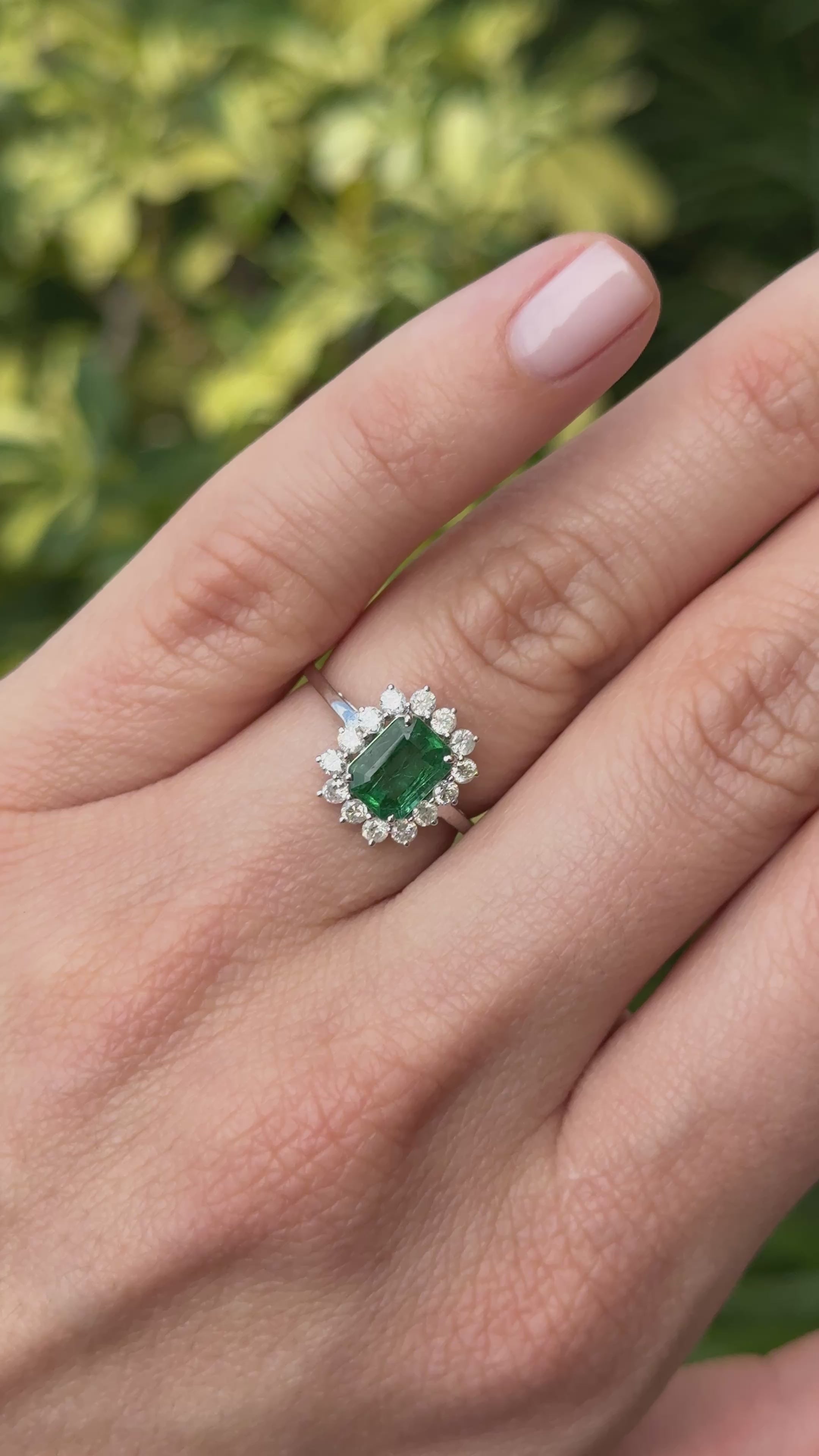 1.89tcw Princess Diana Emerald Cut Zambian Emerald & Round Diamond Halo Ring 14K White Gold