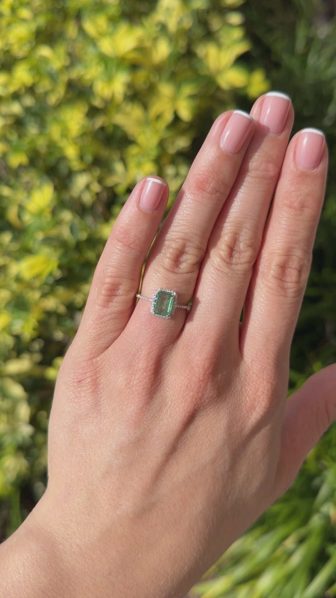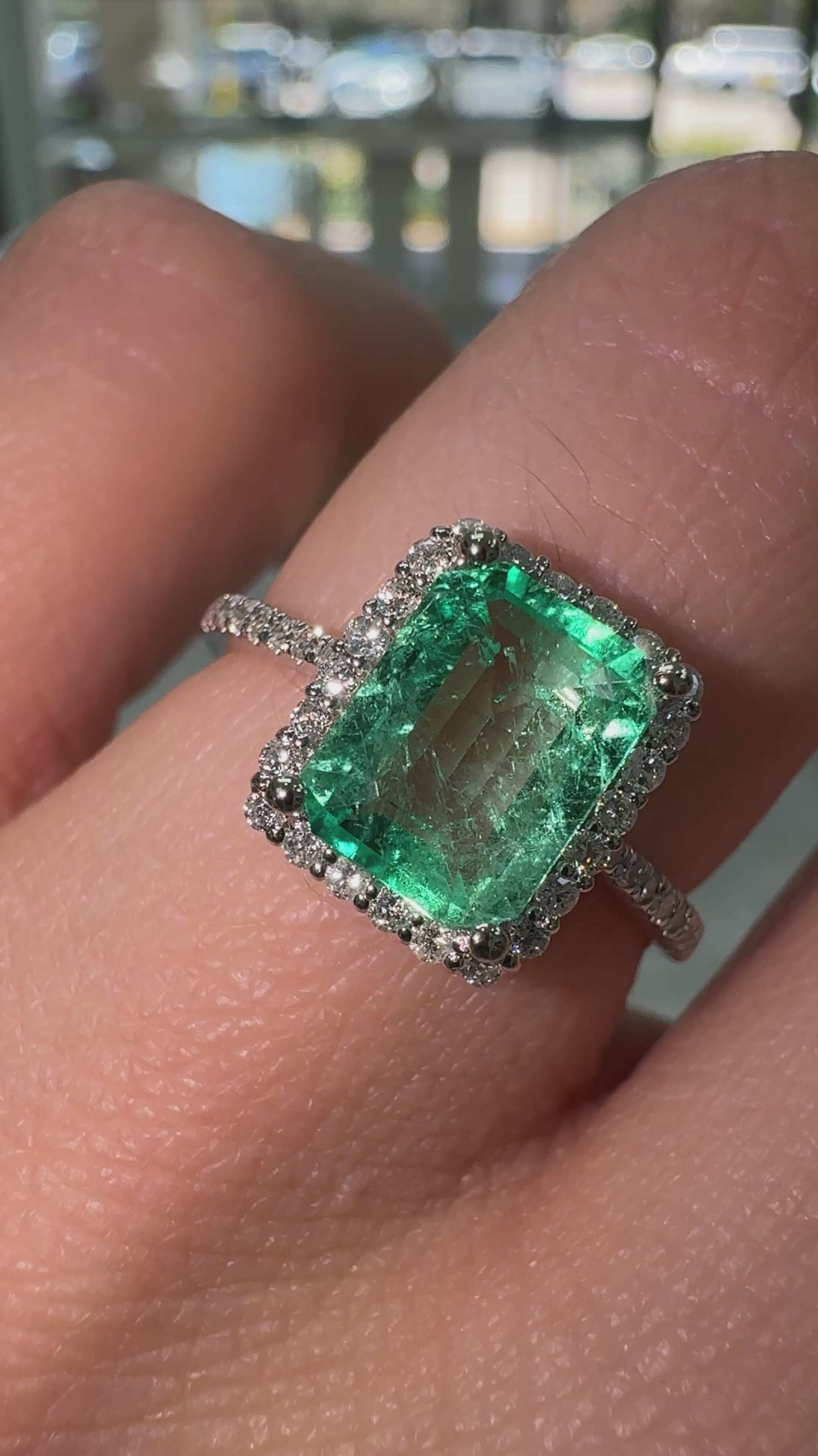 1.70tcw Crystal Clear Colombian Emerald & Diamond Halo Engagement Ring 14K White Gold