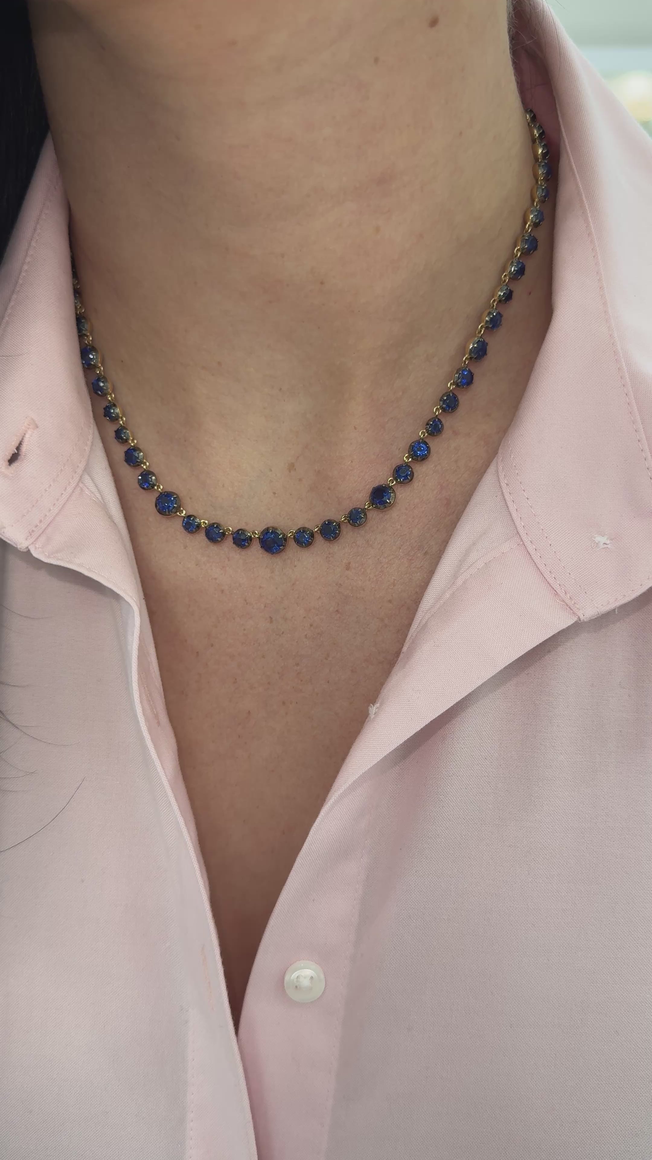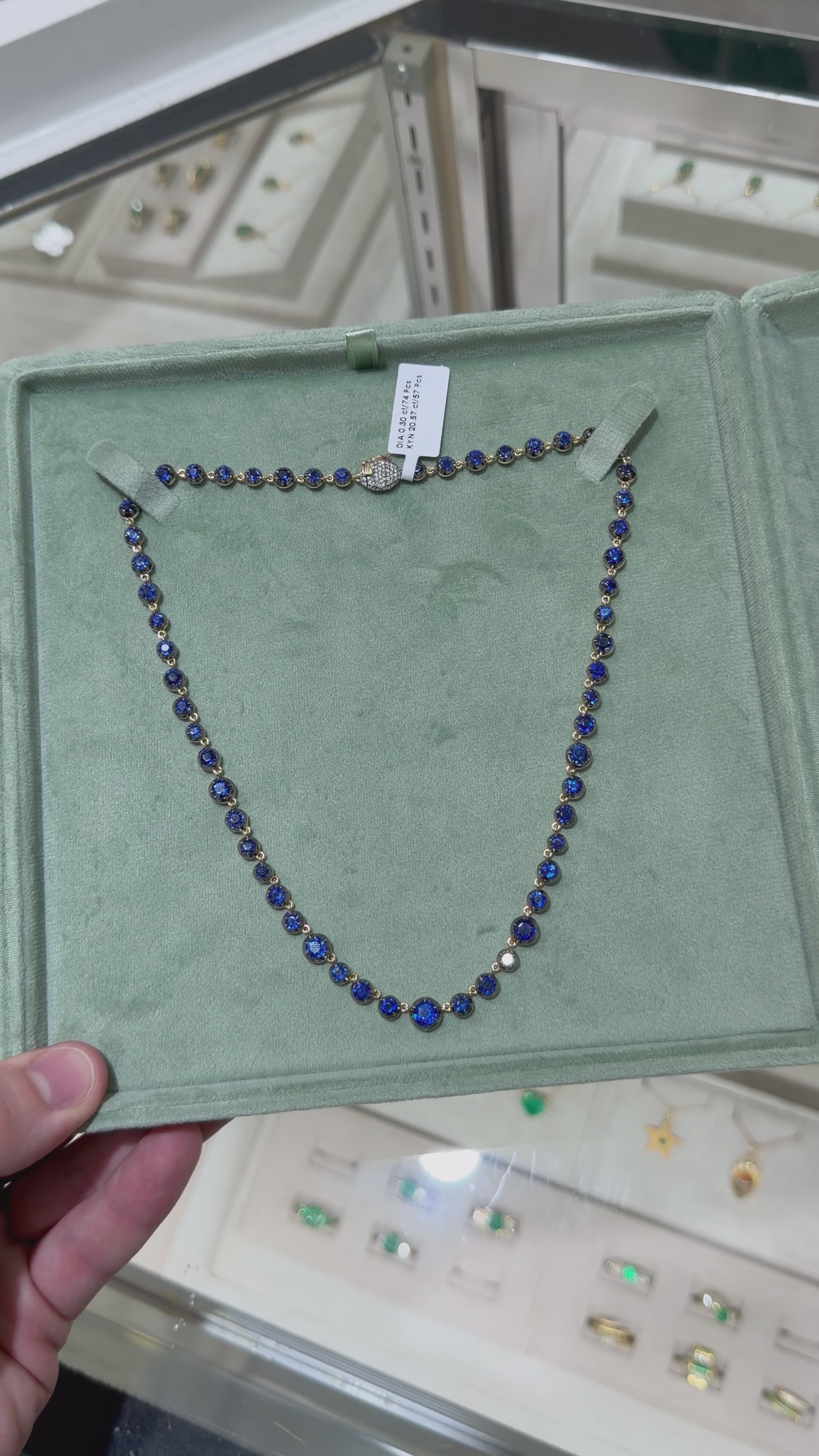 20.87tcw 14K Natural Round Cut Deep Blue Kyanite Button Tennis with Diamond Clasp 17-inch Necklace