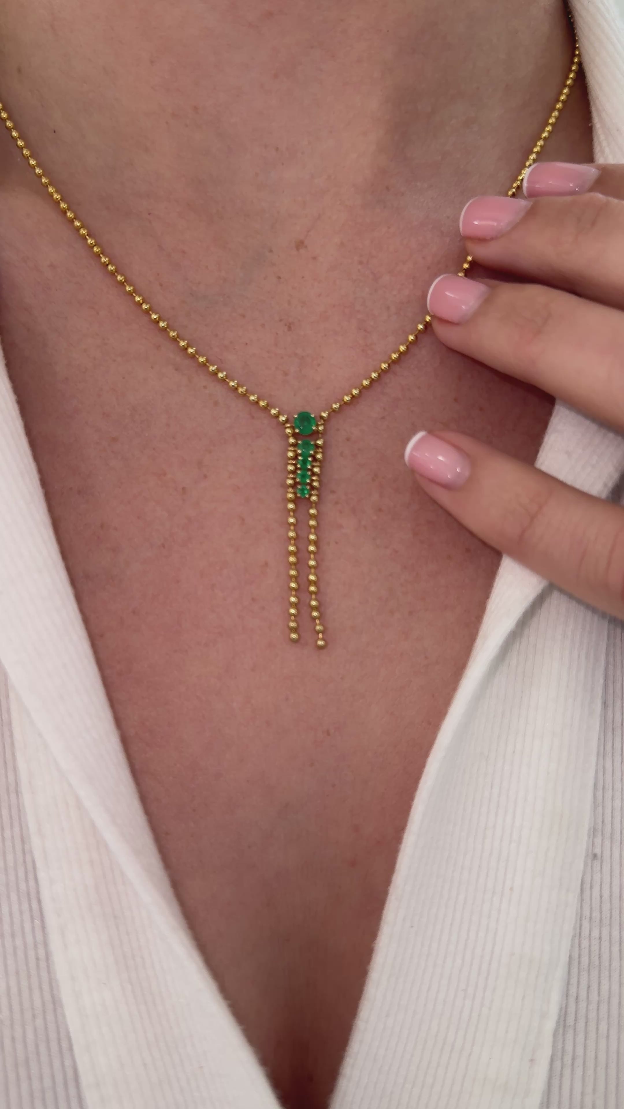 0.63tcw 14K Rich Green Emerald Lariat Gold Statement Necklace