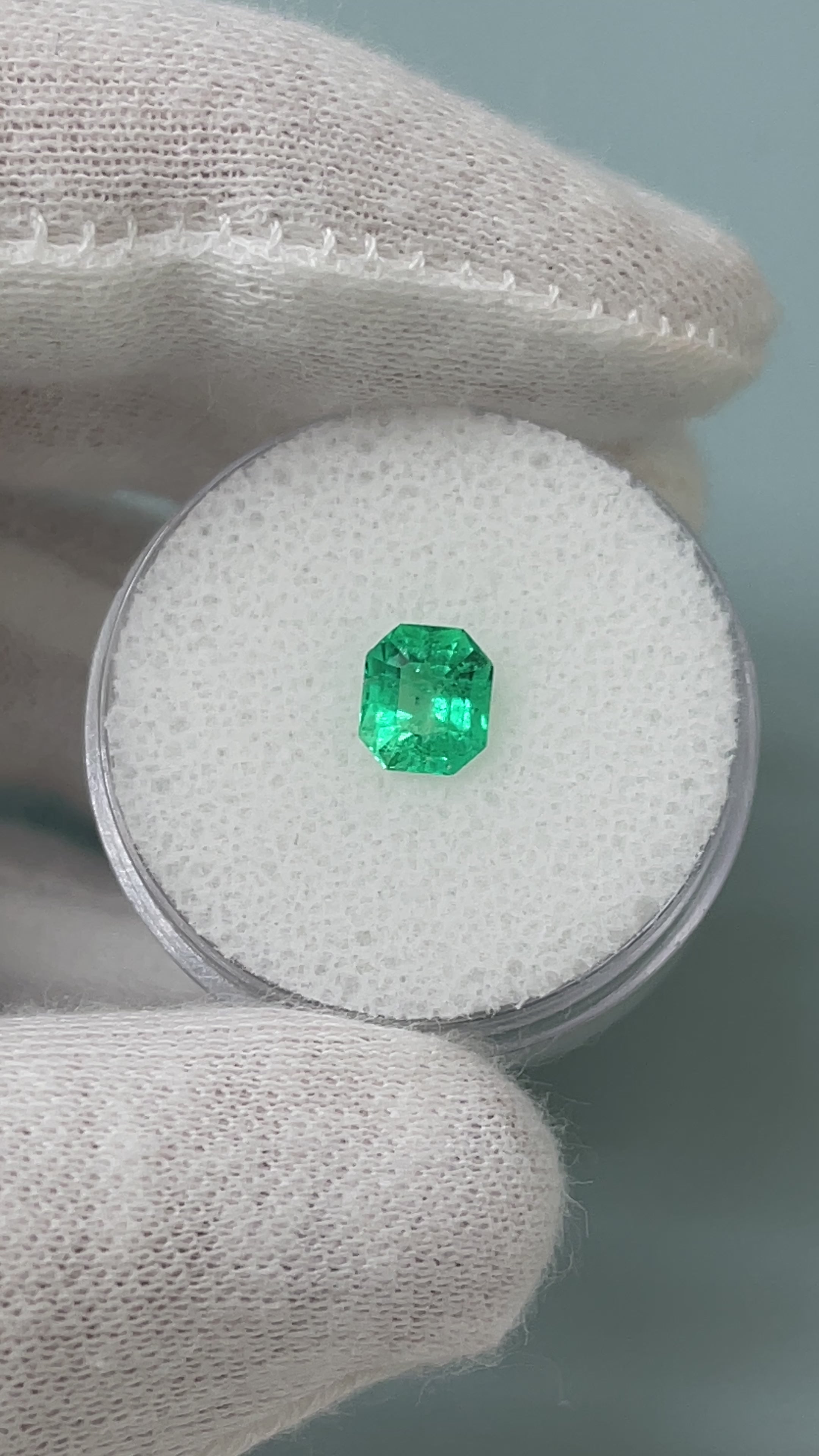0.83 Carat 6x5 Bluish Green Natural Loose Colombian Emerald- Emerald Cut with Clipped Corners