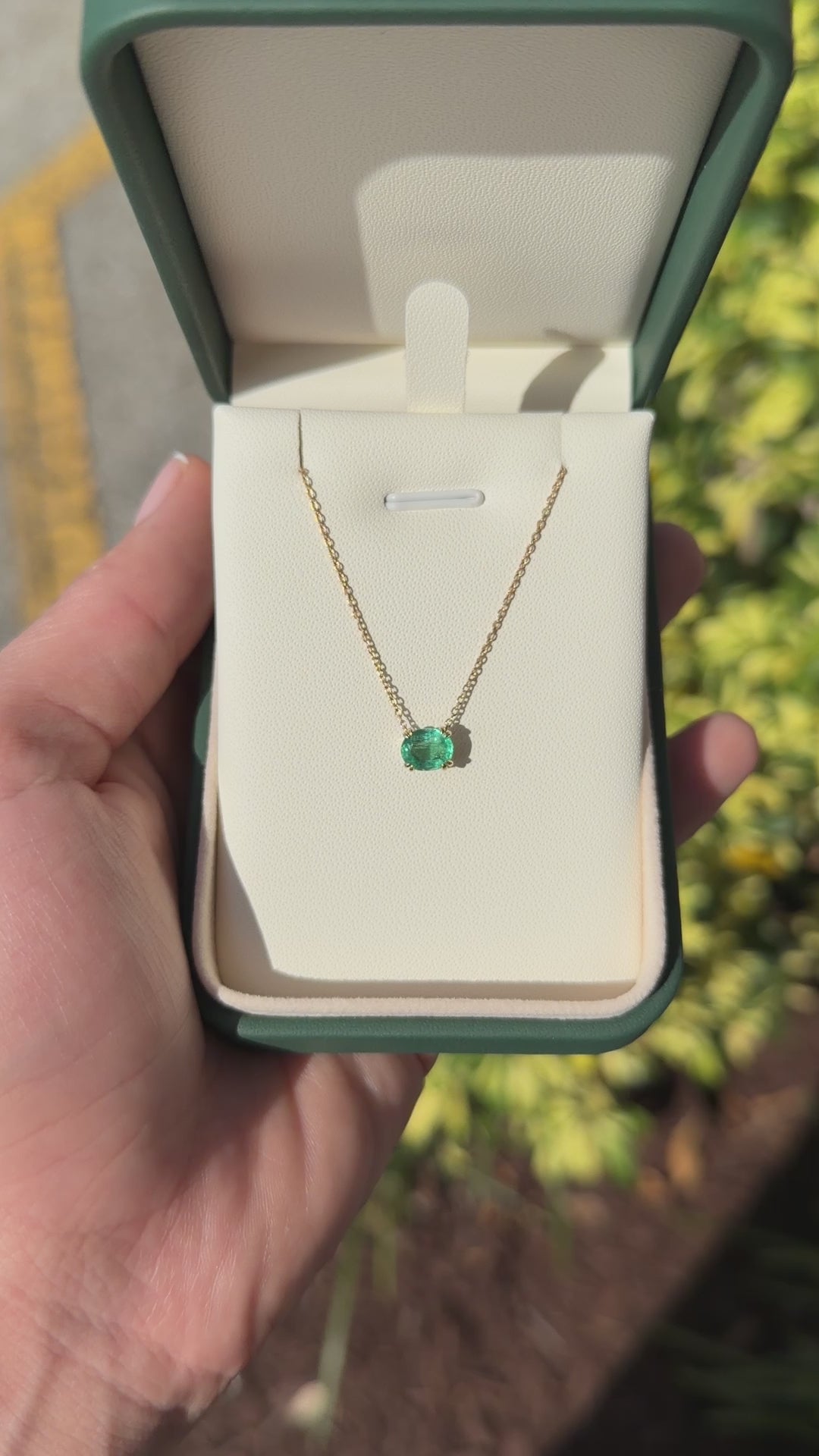 1.0 Carat East To West Transparent Clarity Zambian Emerald Necklace 14K