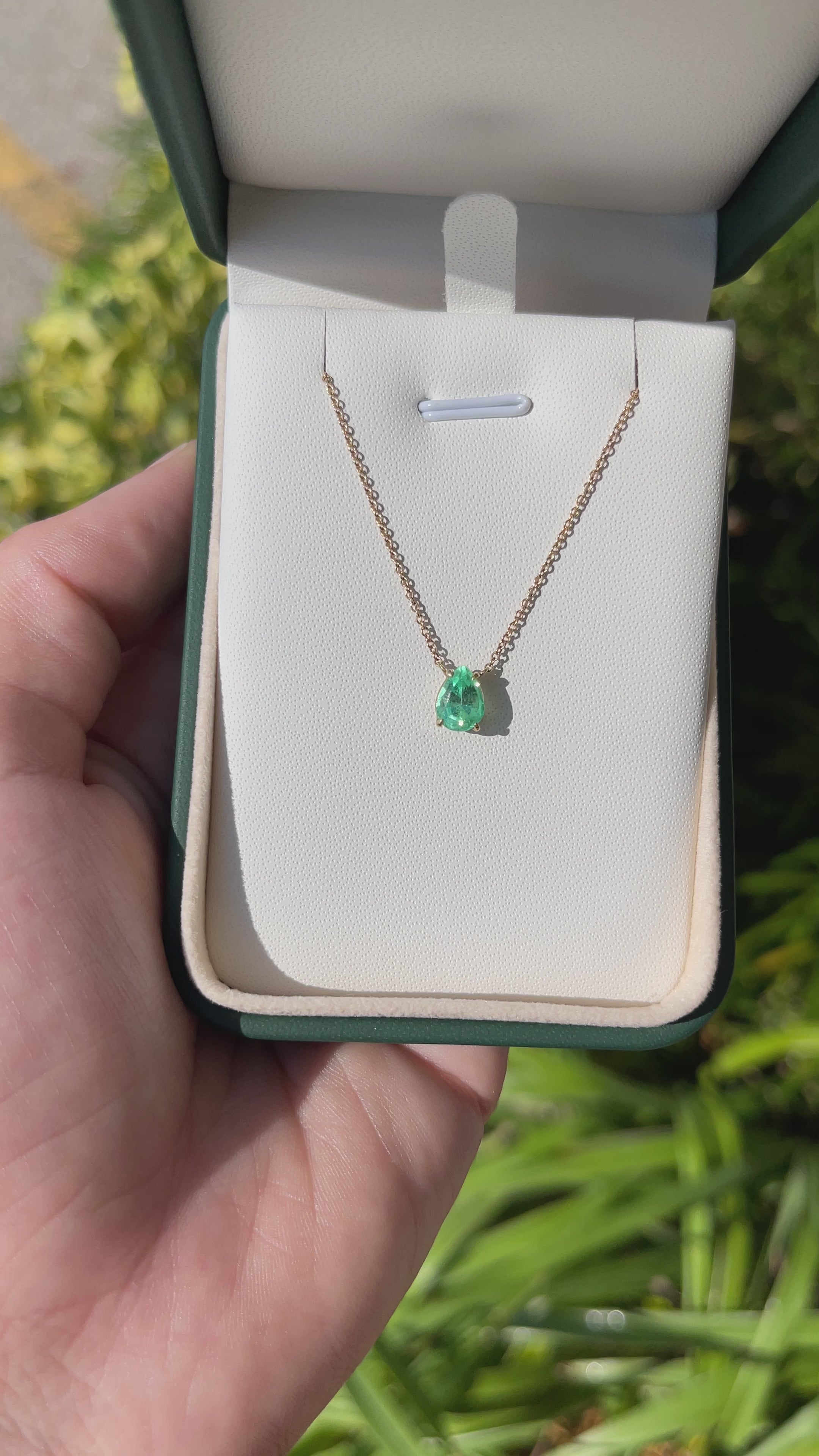 1.07 Carat Colombian Emerald Pear Solitaire Necklace 14K