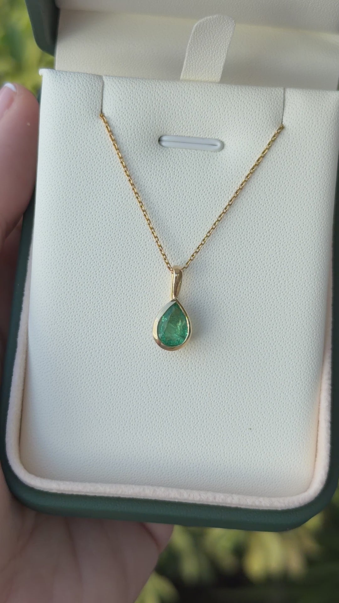 1.0ct Bezel Set Natural Emerald Pear Necklace 14K