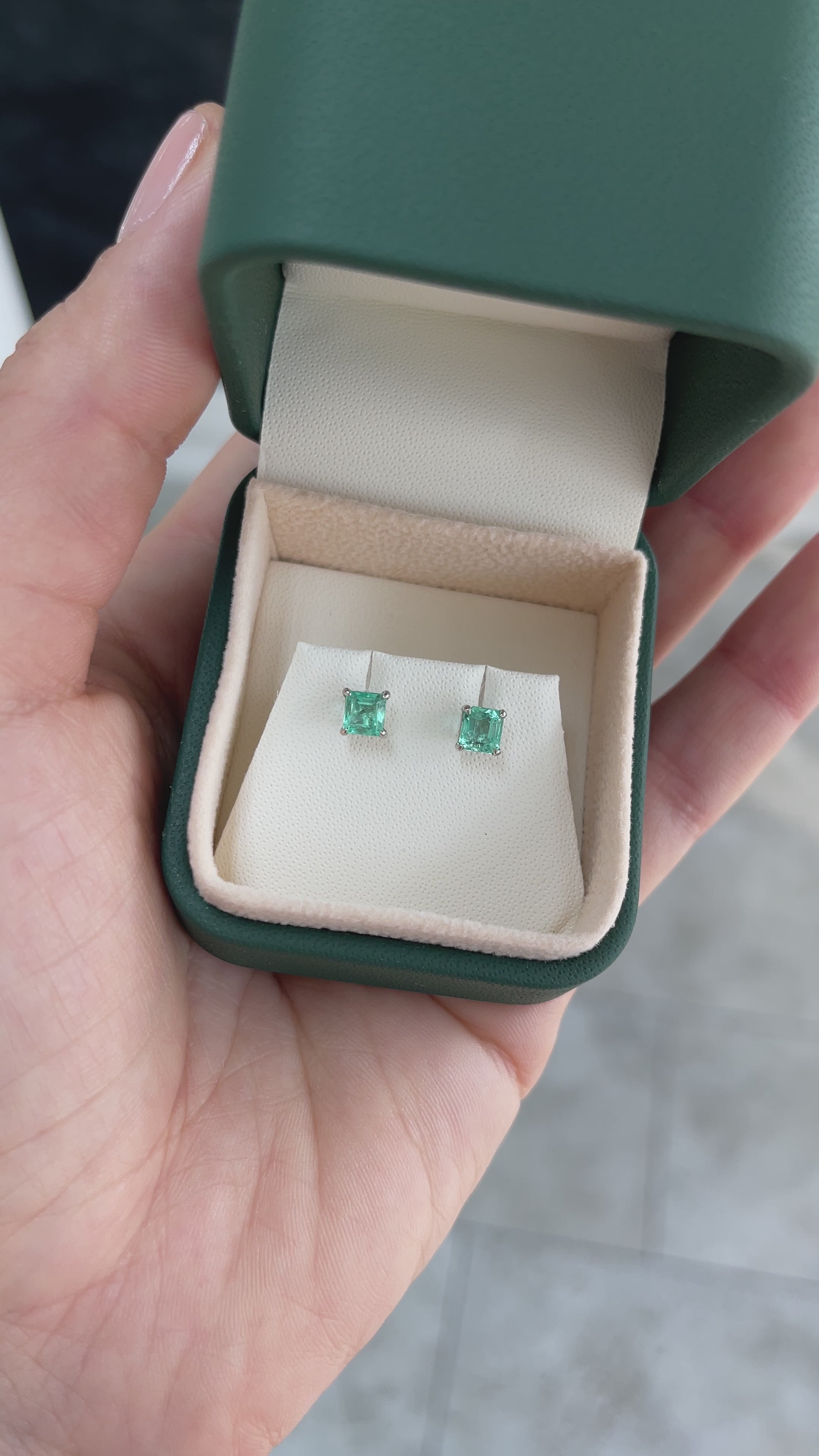 1.0tcw Petite Asscher Medium Bright Real Emerald Stud Earrings 14K