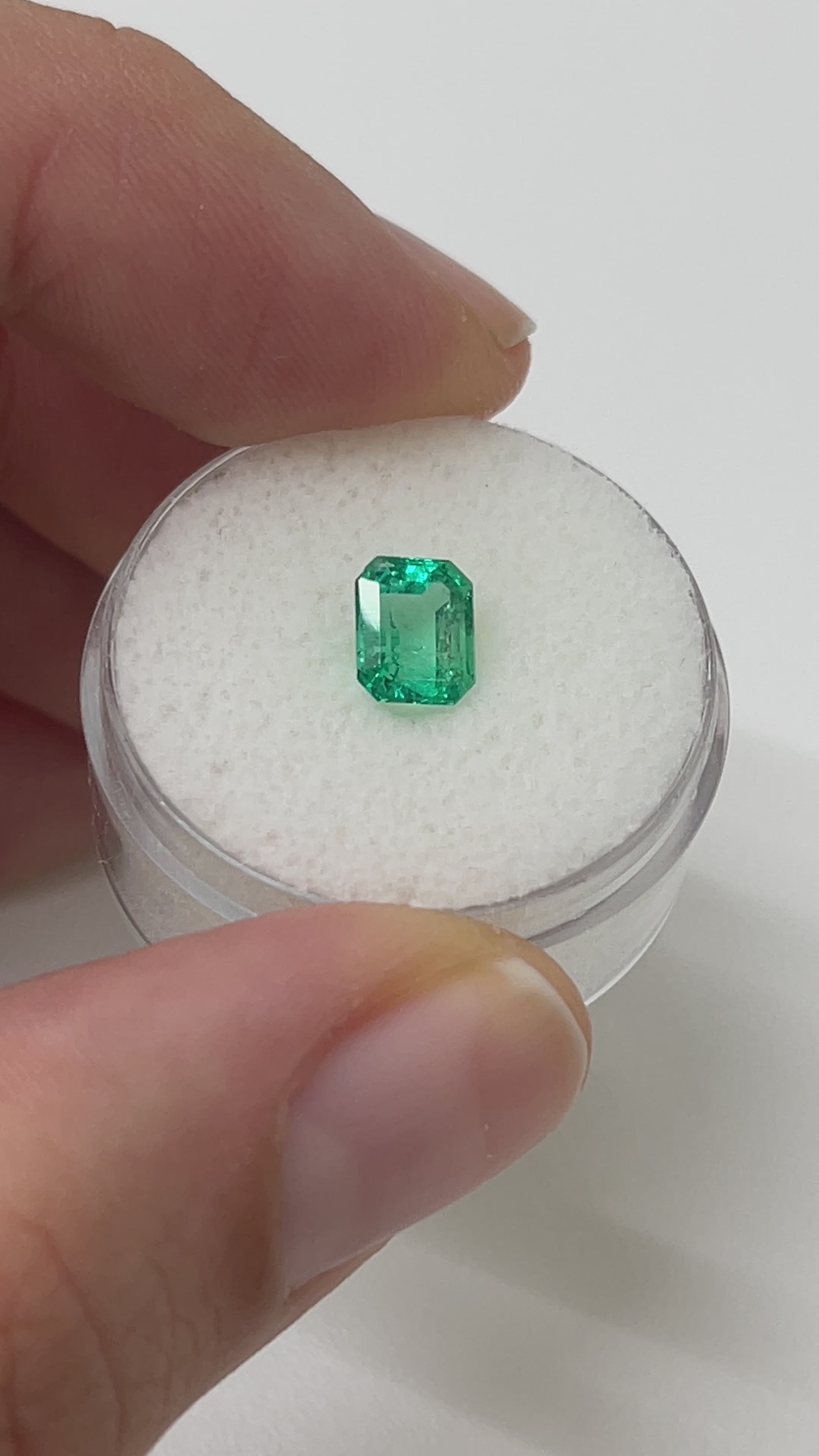 1.22 Carat 7x6 Bluish Green Natural Loose Colombian Emerald- Emerald Cut