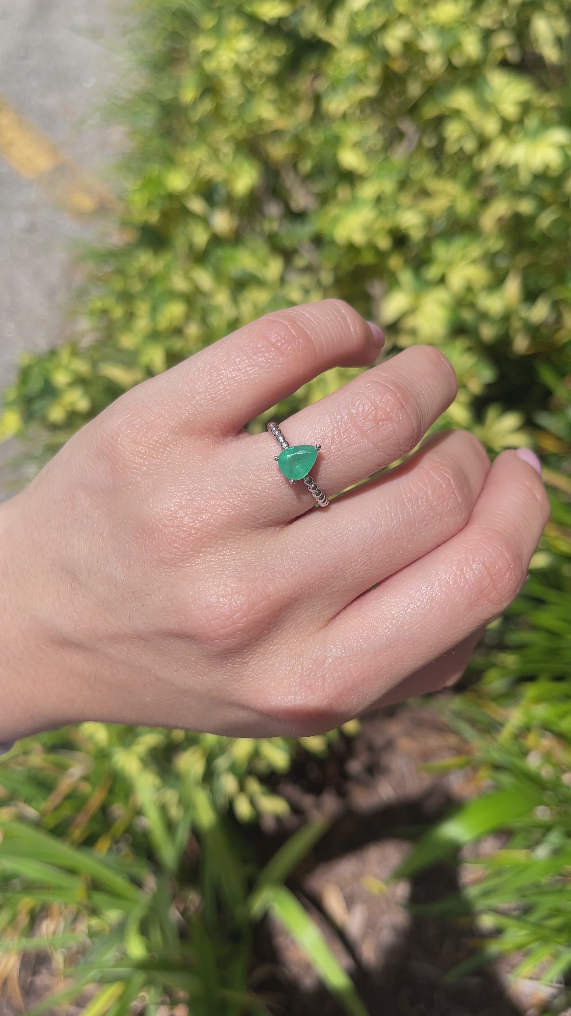 1.25ct 14K Solitaire Natural Pear Cut Emerald White Gold Beaded Ring
