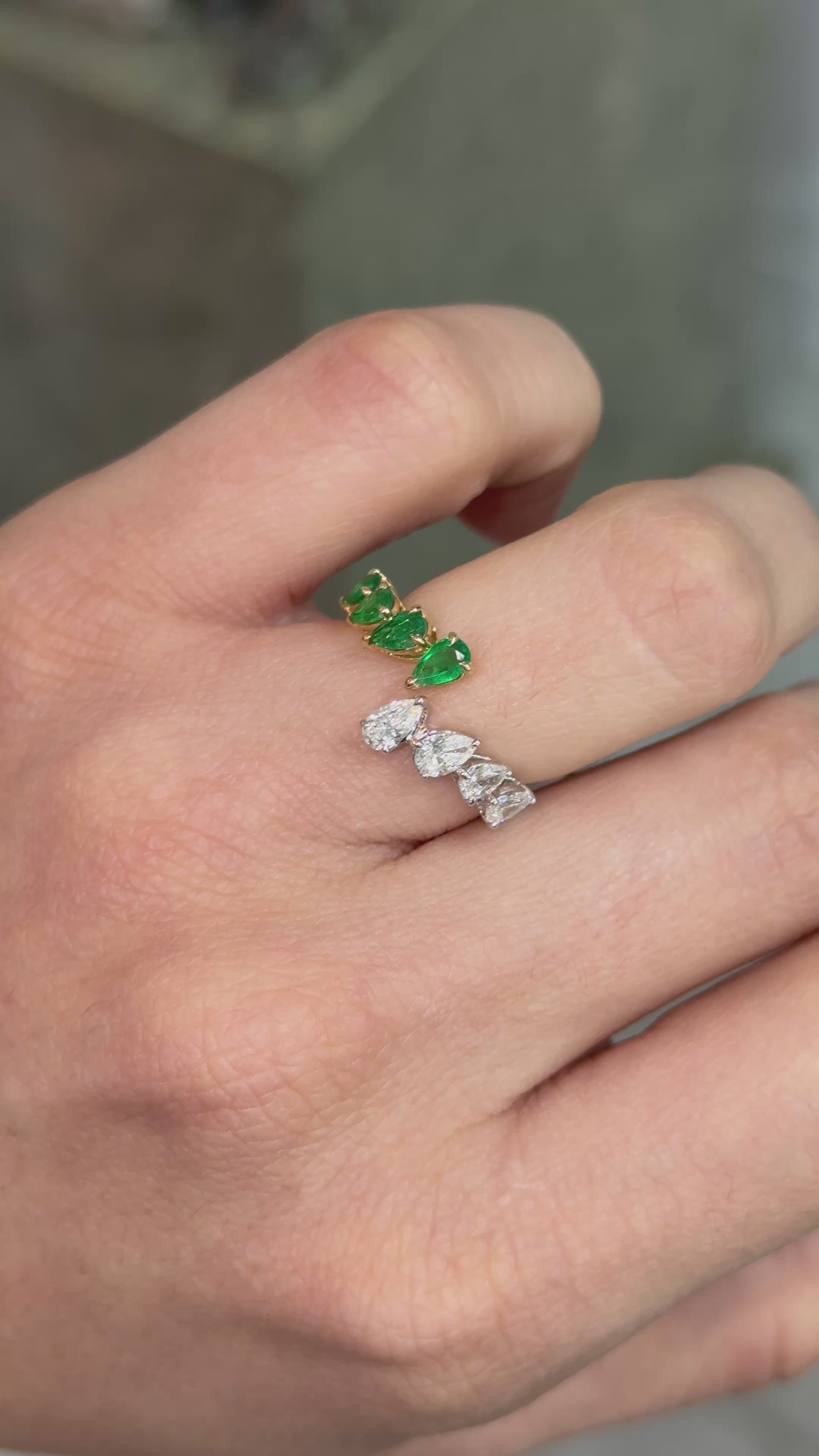 1.27tcw Two Toned Bypass Pear Emerald & Diamond 18K Band
