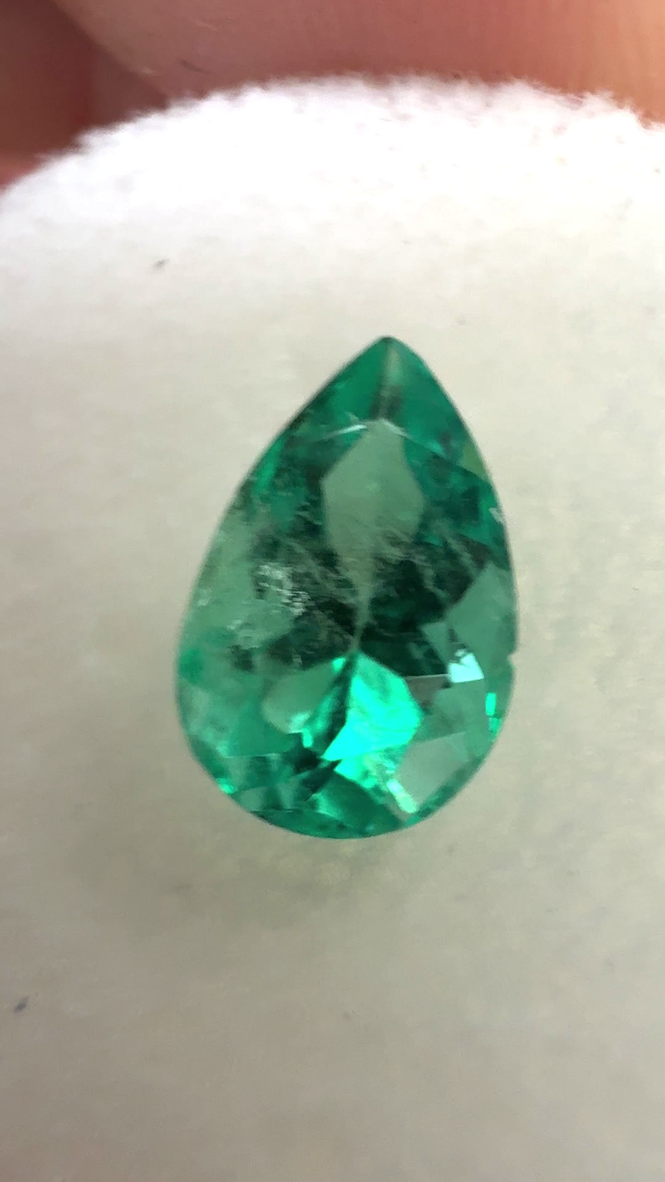1.36 carat 9x6 Medium Bluish Green Natural Loose Colombian Emerald-Pear Cut