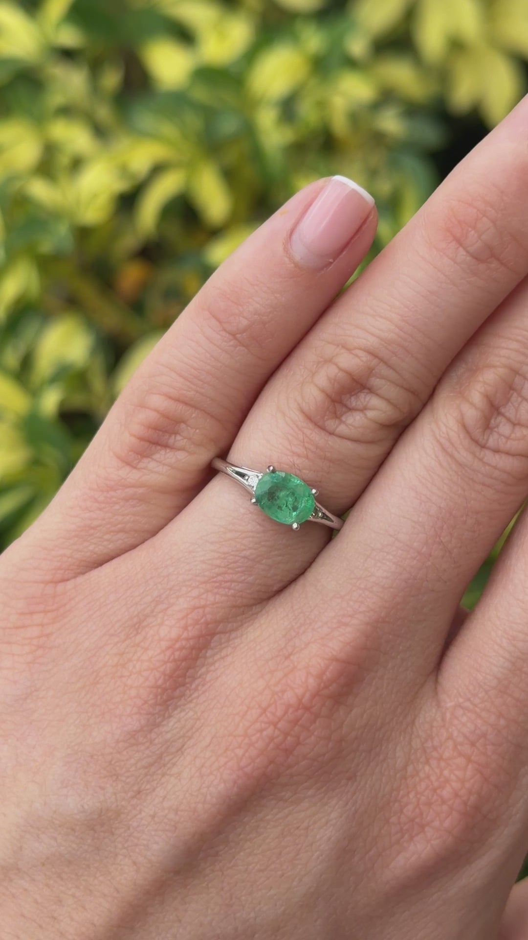 1.42tcw East to West Oval Emerald & Diamond Three Stone Ring 14K White