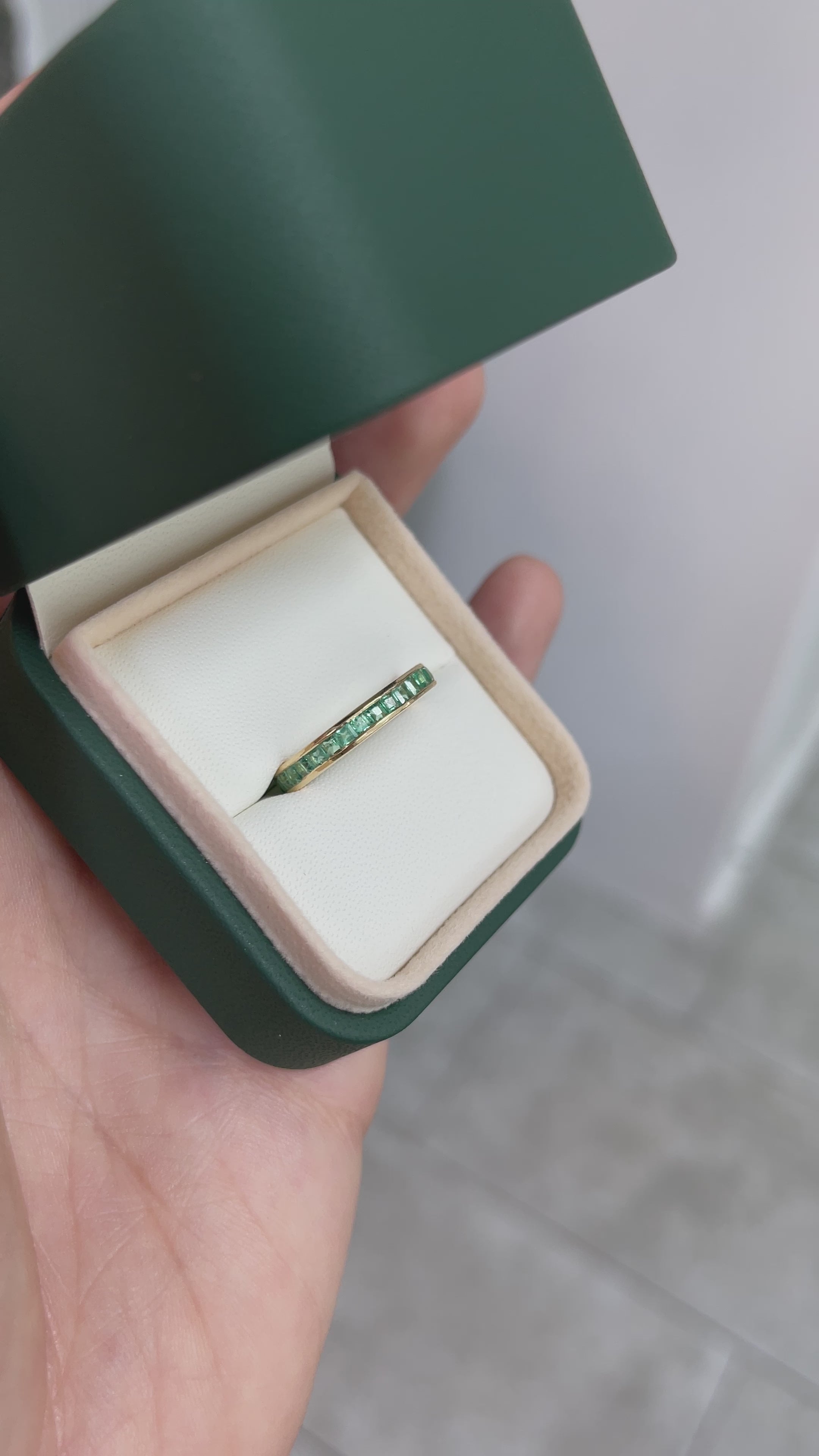 1.44tcw Princess Cut Emerald Channel set Eternity Band 14K