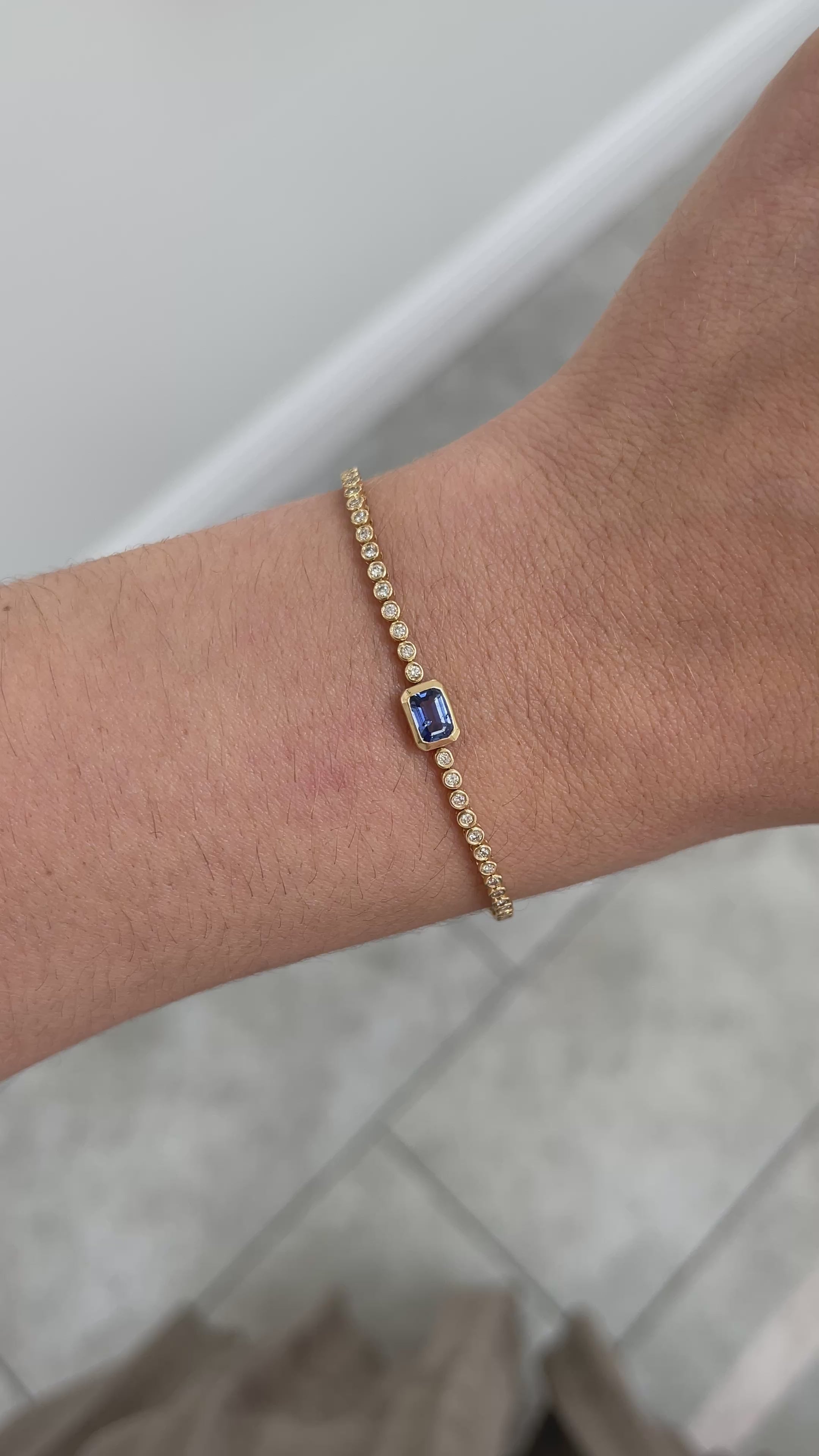 1.46tcw Bezel Set Pastel Blue Sapphire & Diamond Tennis Bracelet 14K- 7 inches