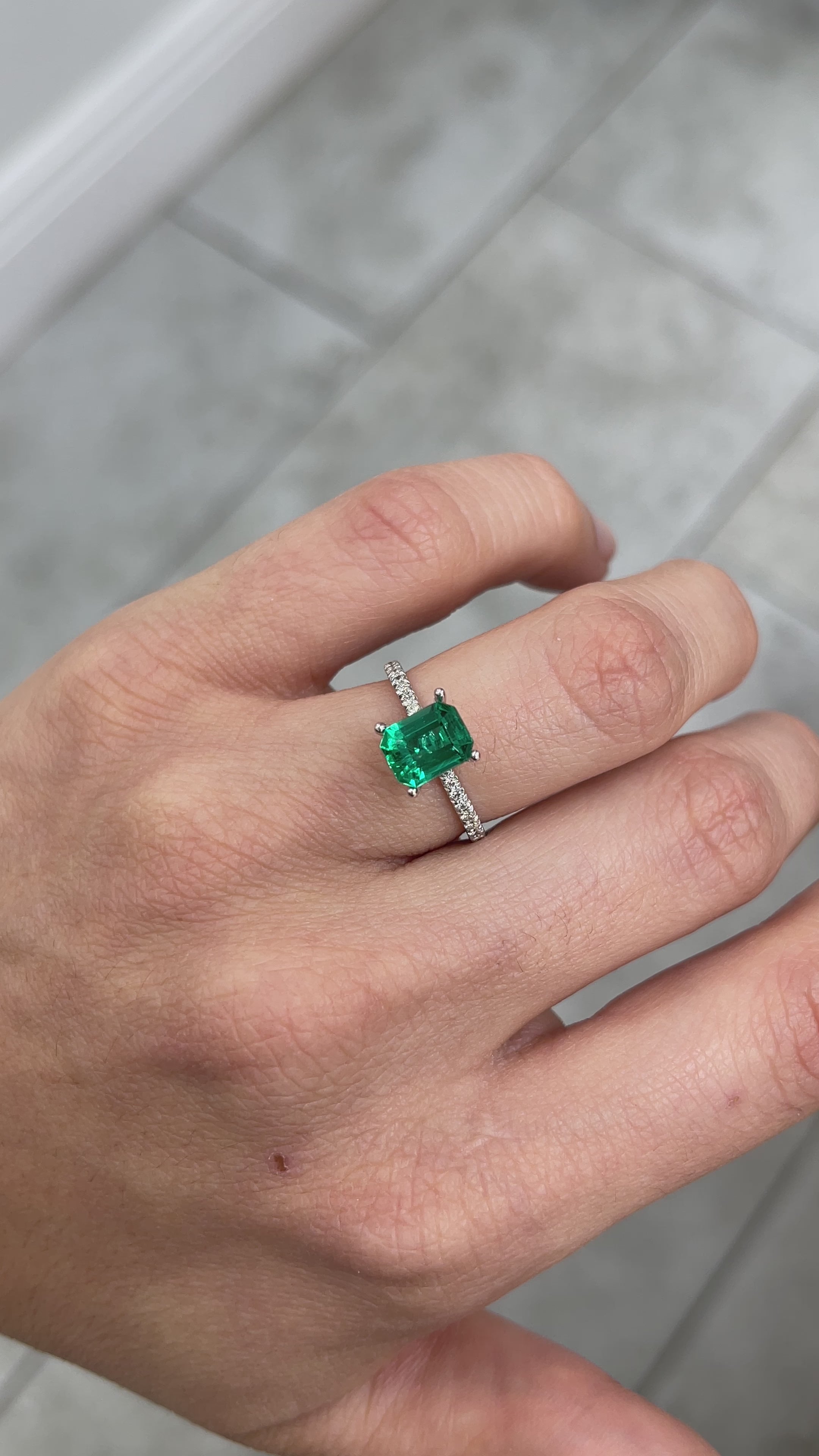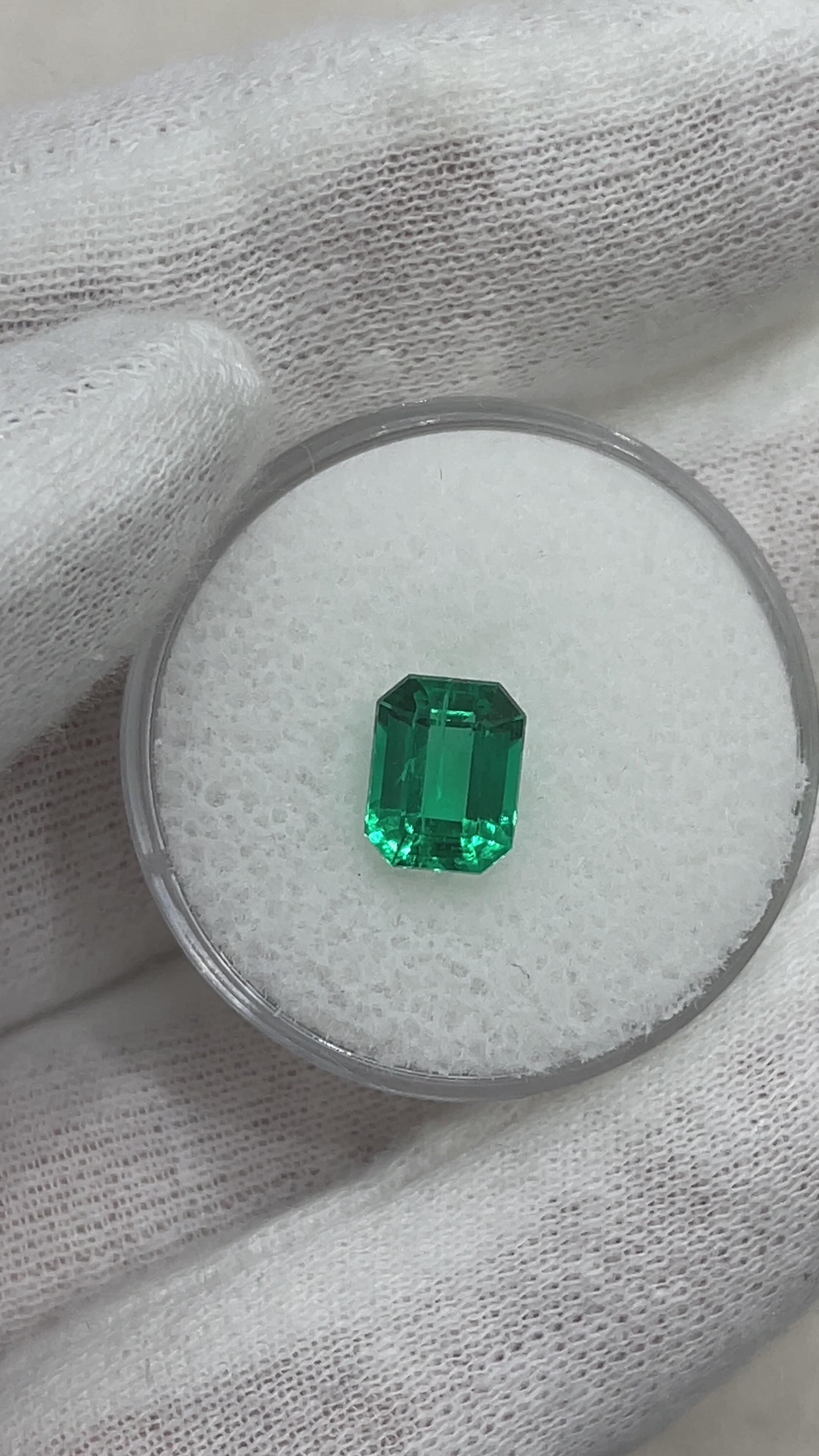 1.49 Carat 8x6 Vivid Bluish Green Classic Colombian Emerald- Emerald Cut