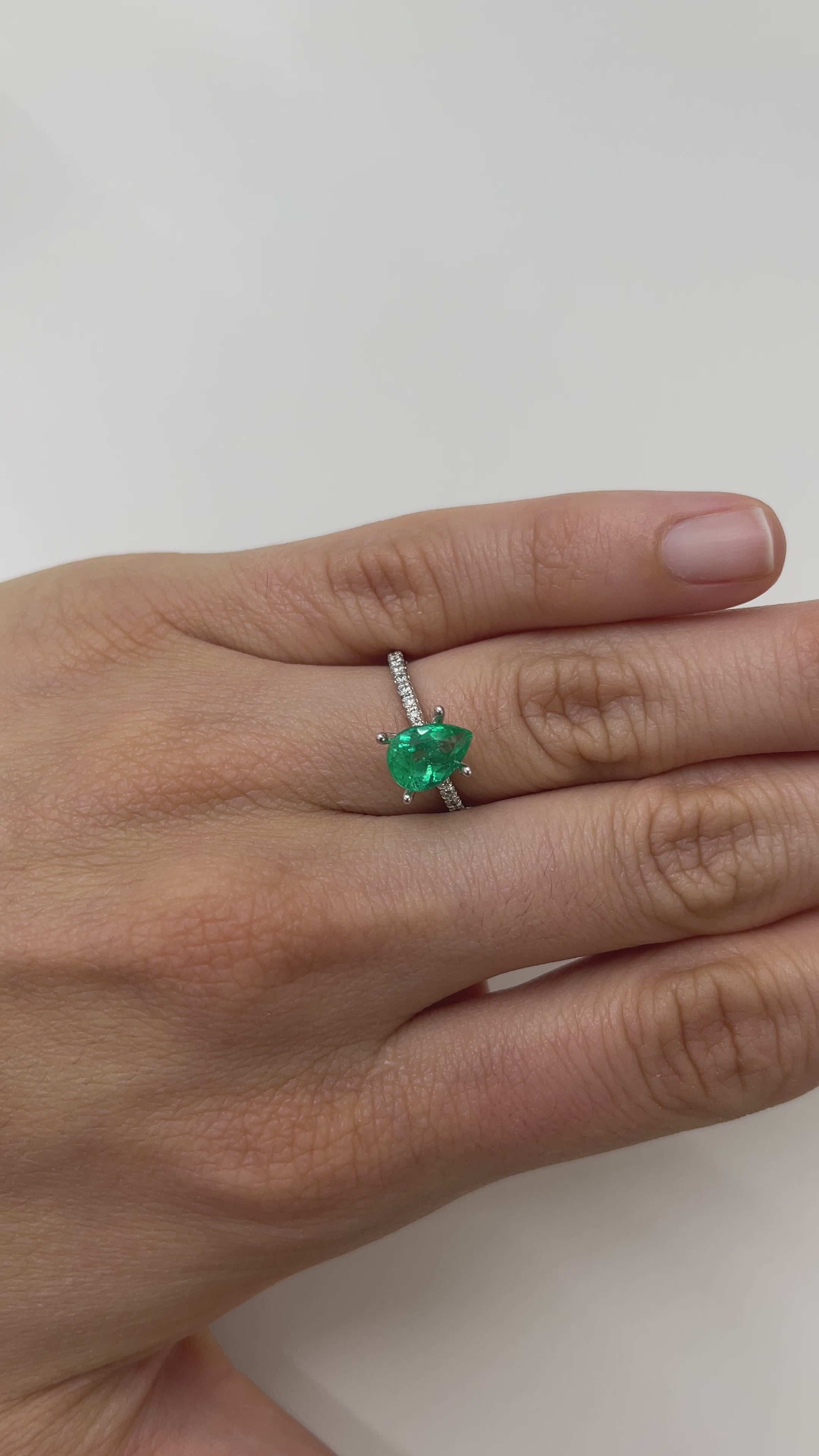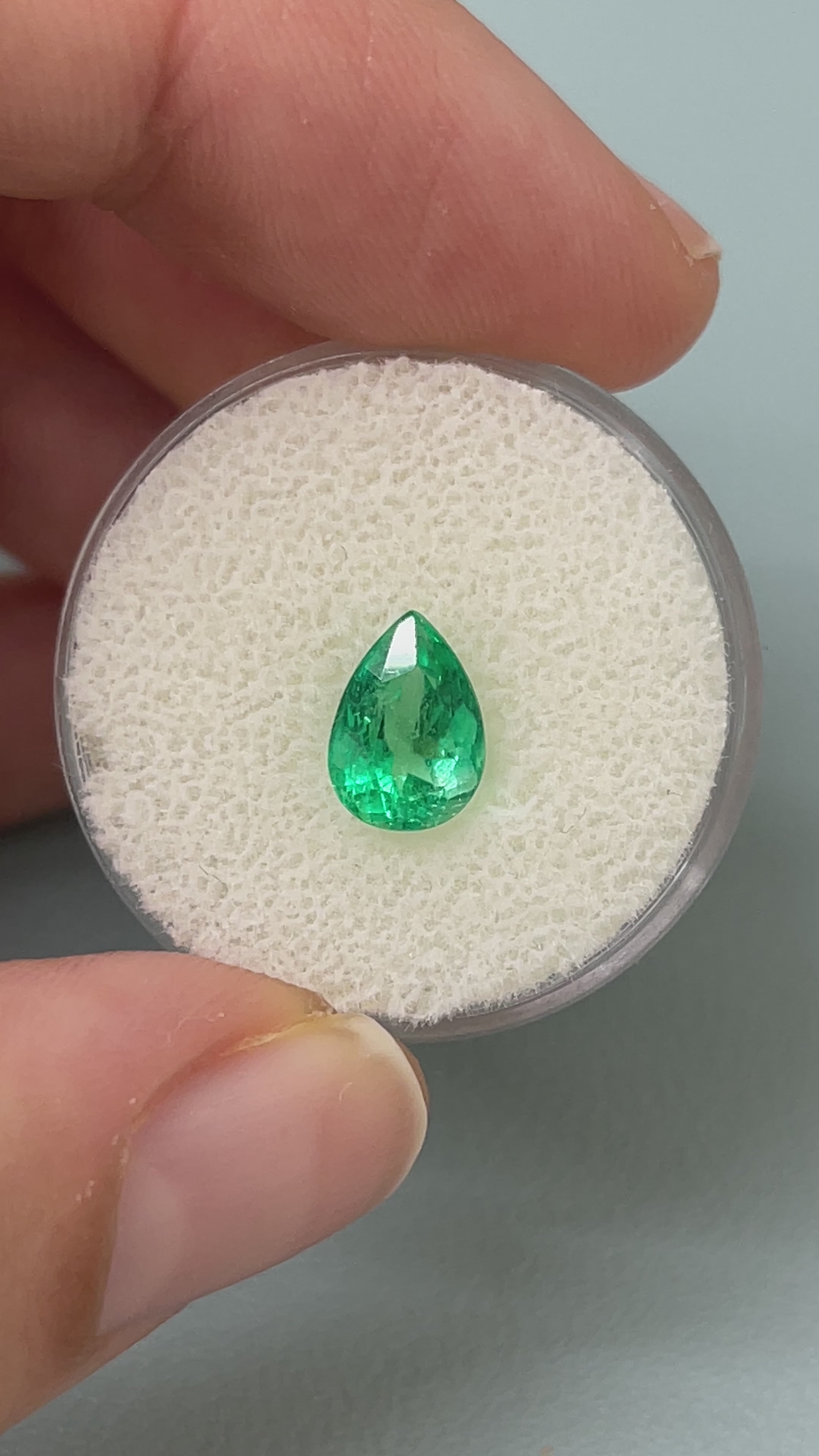 1.65 carat Vivid Blue Green Natural Loose Colombian Emerald-Pear Cut