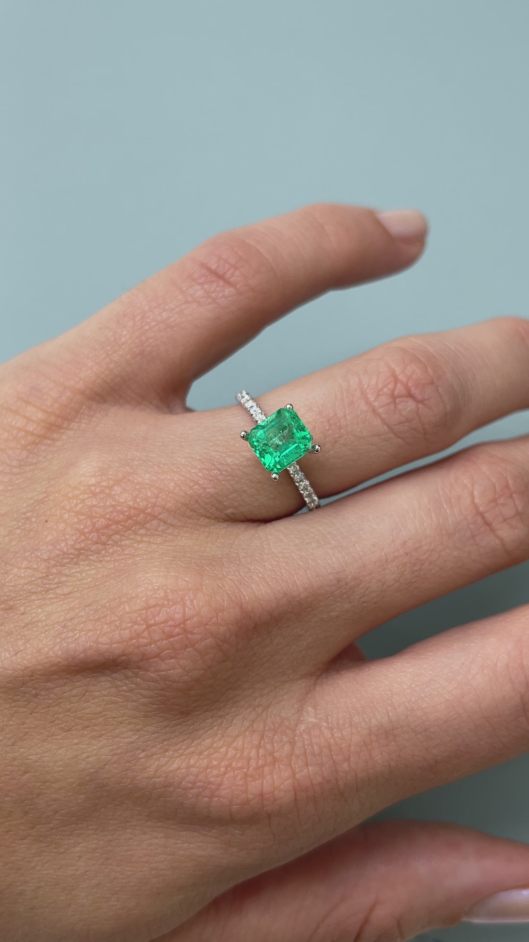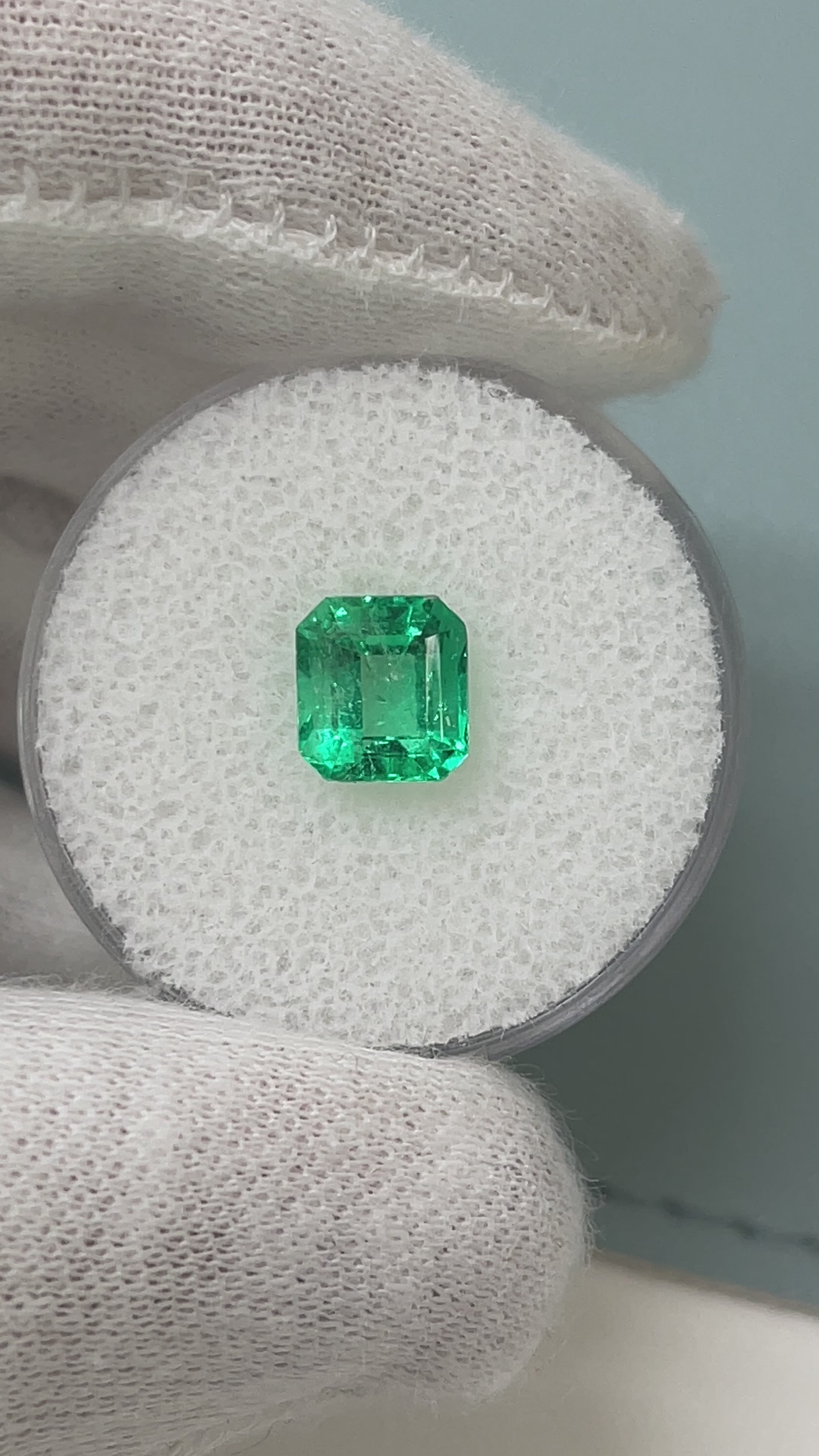 1.68 Carat 7.5x7 Crystalline Muzo Yellowish Green Asscher Cut Natural Unset Colombian Emerald