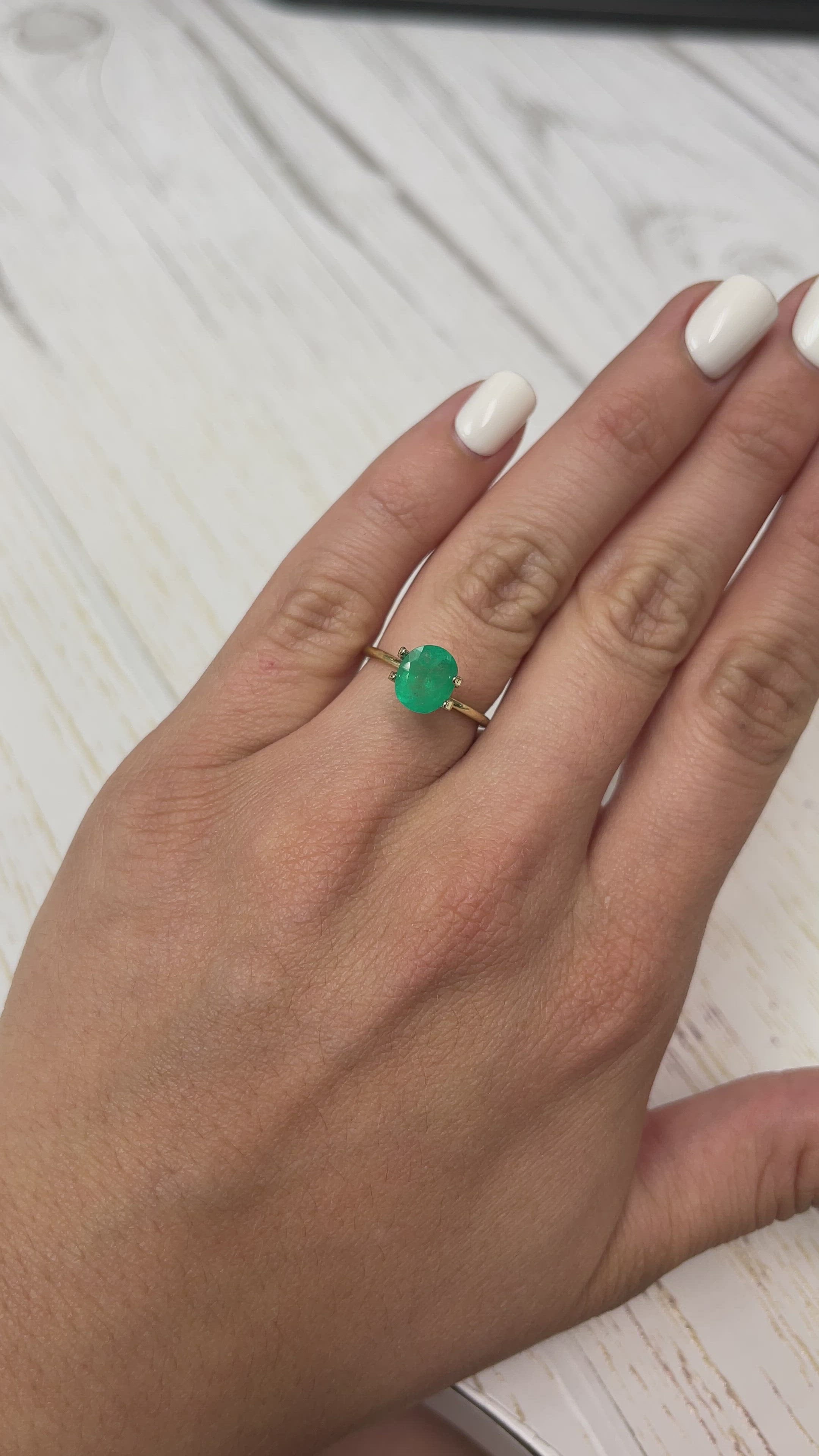 1.76 Carat 8.6x7.6 Chunky Medium Green Natural Loose Colombian Emerald-Oval Cut