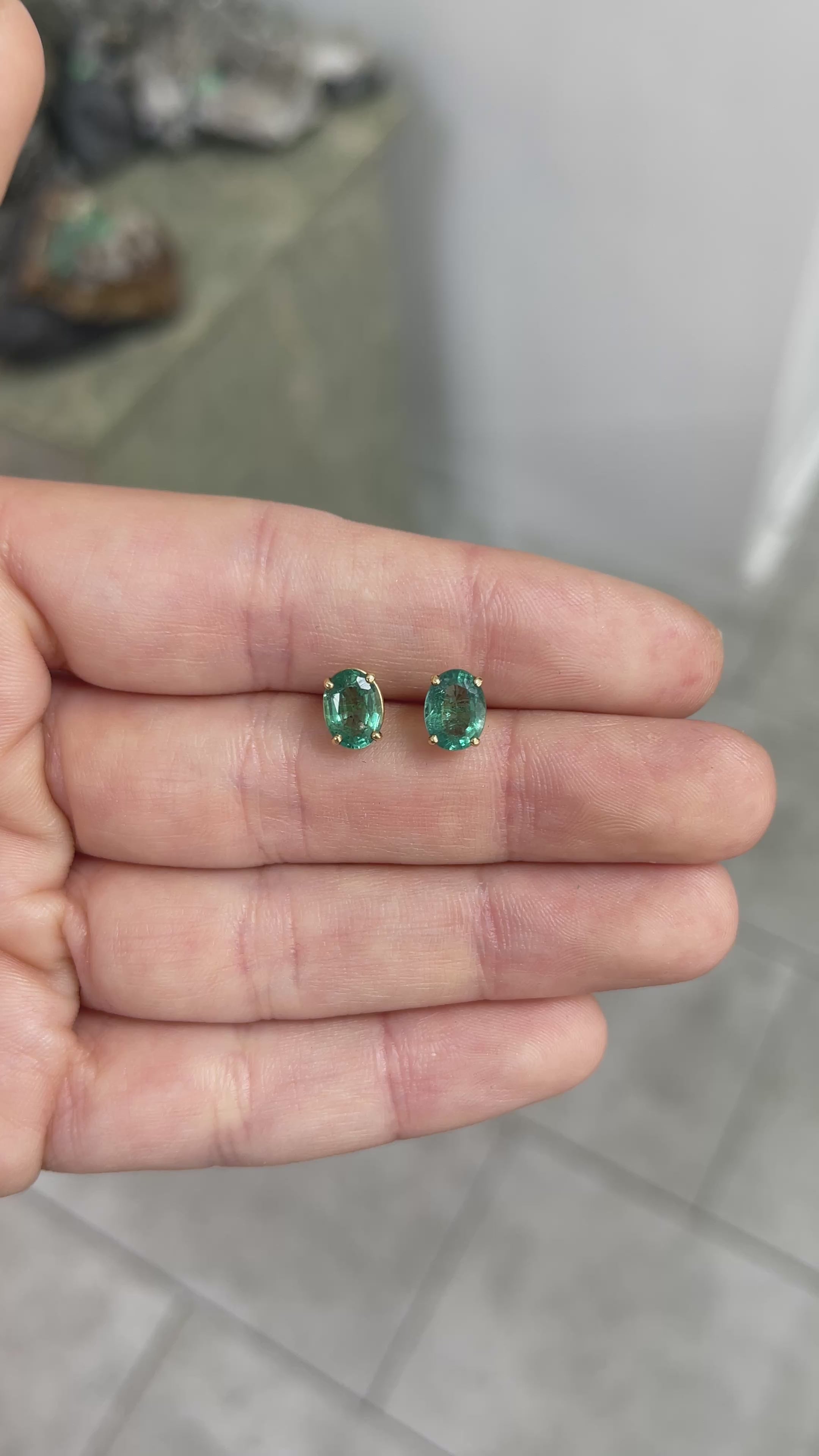 1.95tcw Natural Bluish Green Oval Classic Stud Earrings 14K Yellow Gold