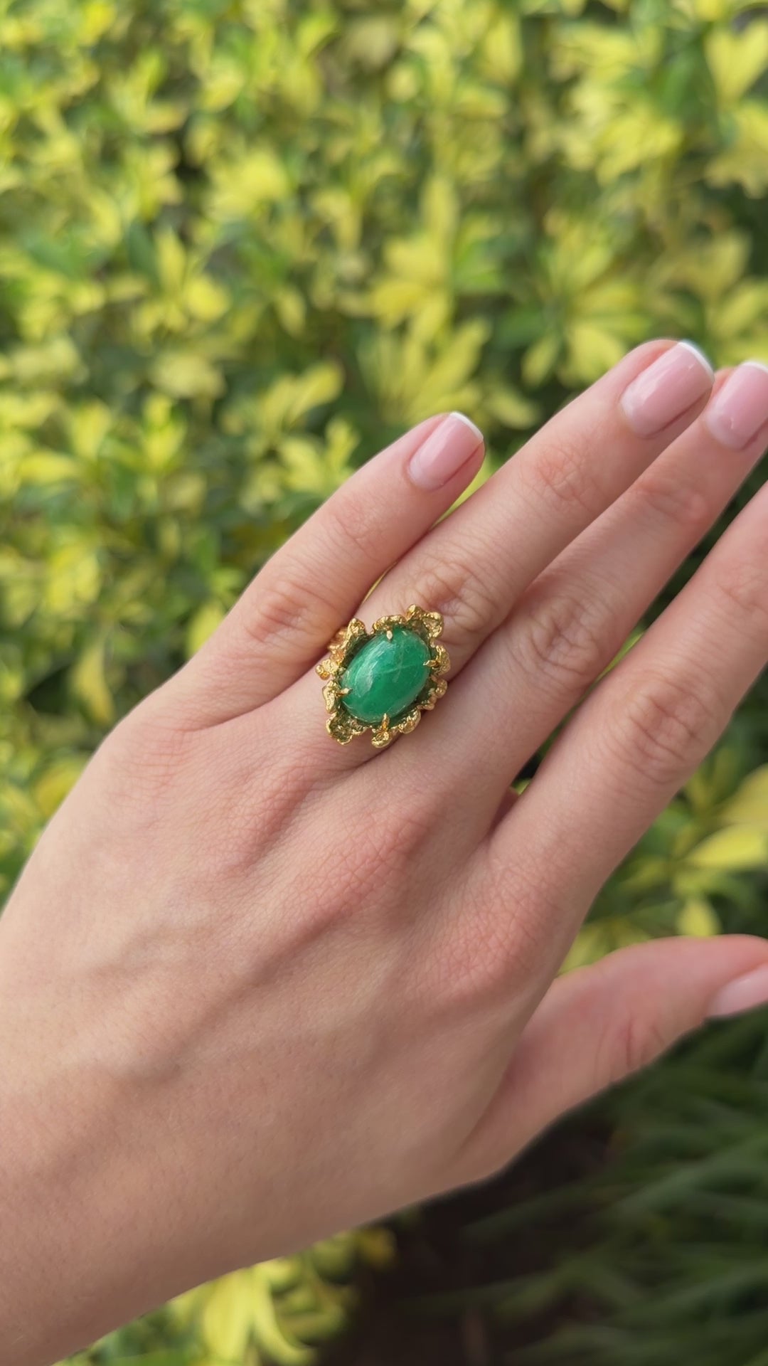 12.87ct 18K Natural Cabochon Cut Oval Emerald Solitaire Nugget Gold Ring