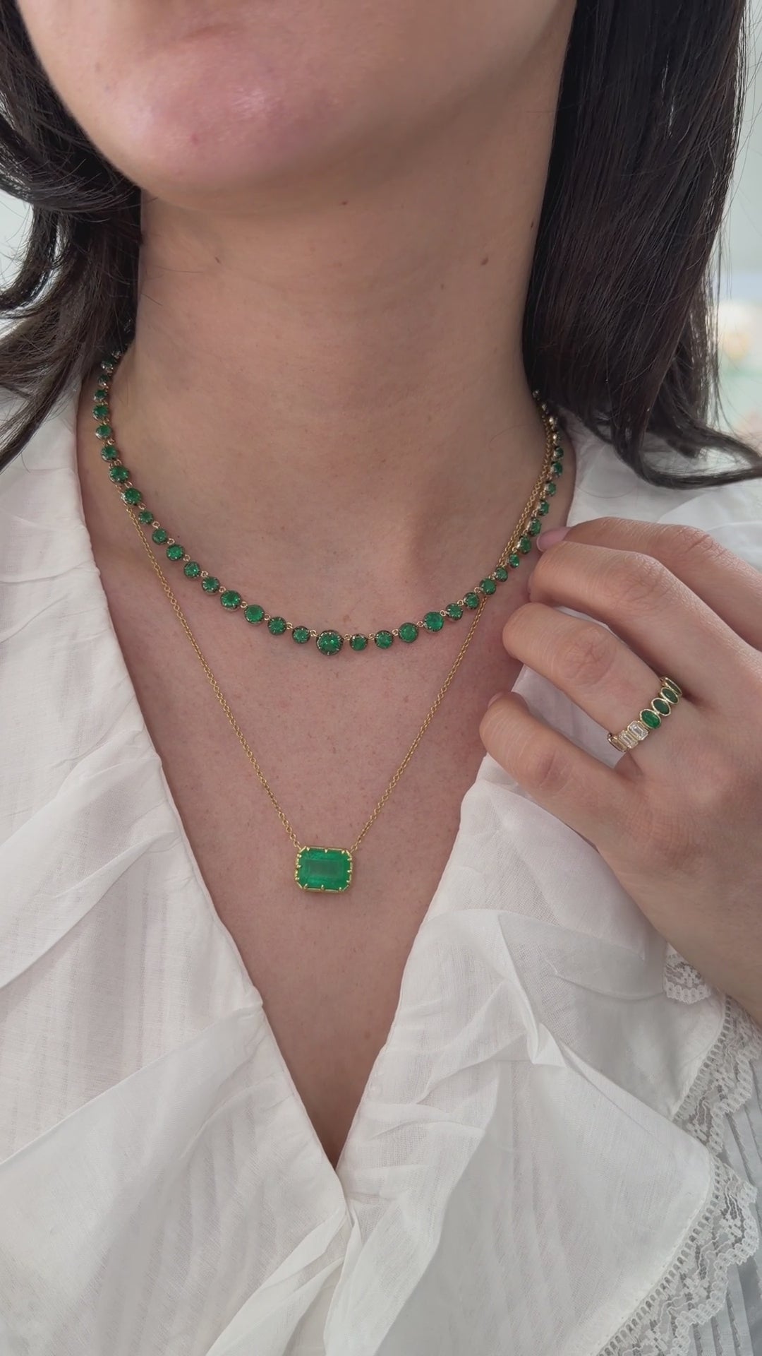 15.38tcw Round Emerald Button Back Tennis Necklace 14K