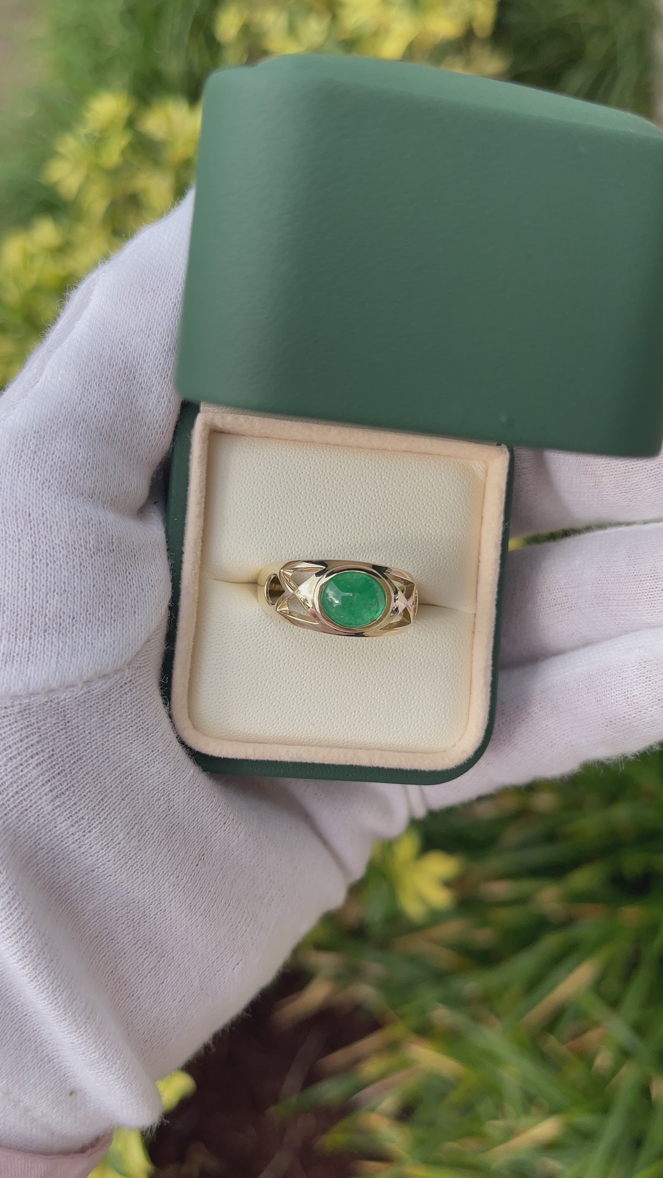 2.0 Carat Natural Green Emerald Oval Cabochon Gold Men's Ring