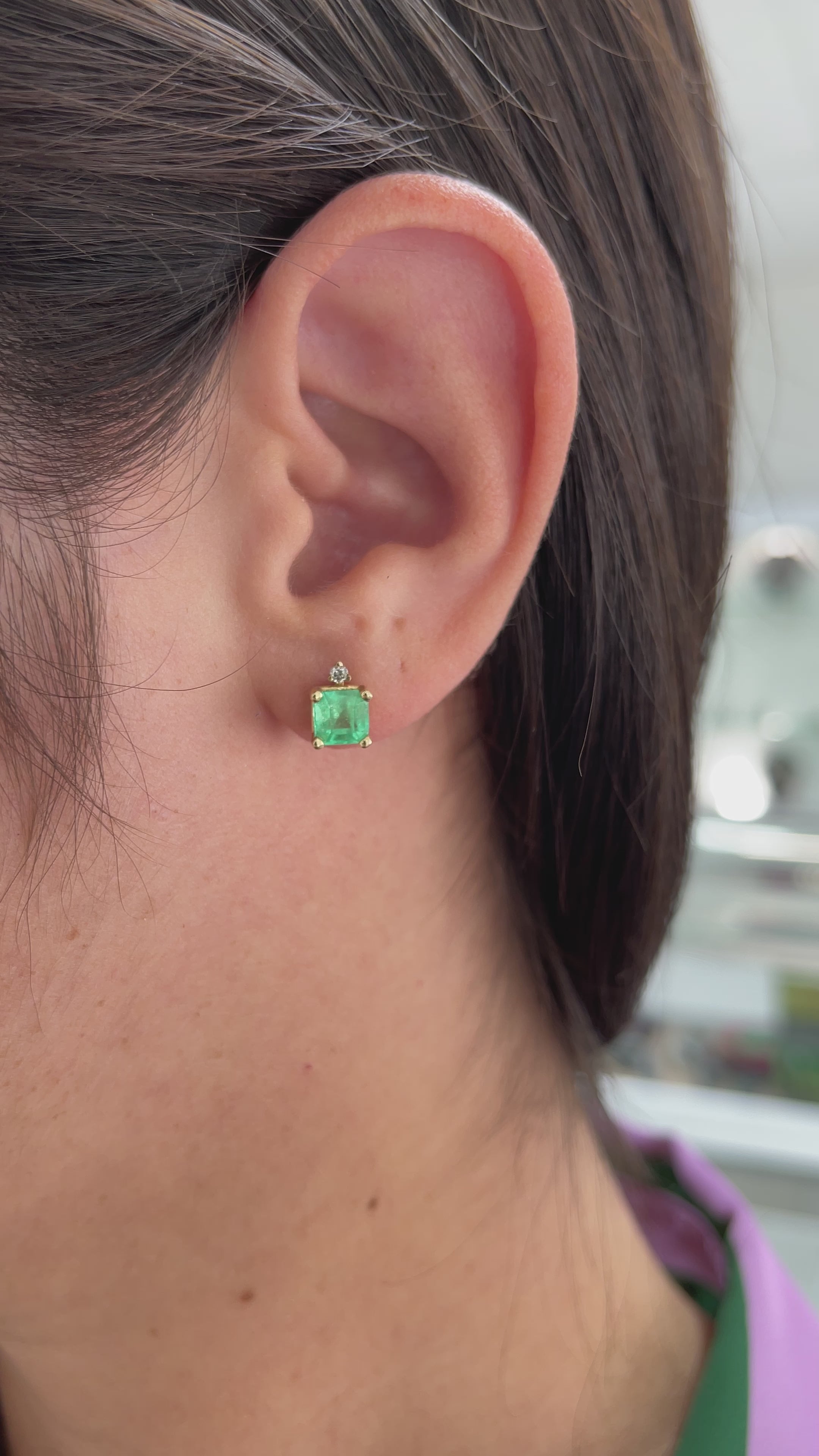 2.07tcw Natural Emerald & Diamond Accent Stud Earrings 14K